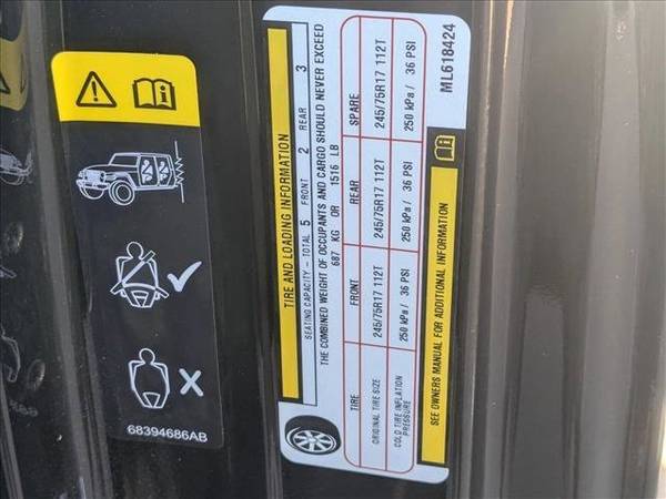 * 8.4" Radio & Premium Audio Group * Transmission: 8-Speed Automatic (850Re) * Black 3-Piece Hard Top * Max Tow Package W/4.10 Axle Ratio * Alpine Premium Audio System * Cold Weather Group * Safety Group * Technology Group * Anti-Spin Differential Rear Axle * Convenience Group * Navigation System * Auxiliary Switch Group * Black Clearcoat * SiriusXM Satellite Radio * Wheels: 17" X 7.5" Gloss Black Aluminum * Corning Gorilla Glass * Tires: 245/75R17 Bsw A/T Dueler * Locking Lug Nuts * Keyless Start * Convertible Hardtop * 4.10 Rear Axle Ratio * Black; Cloth Low-Back Bucket Seats * Engine: 3.6L V6 24V Vvt Upg I W/Ess * Gpec 5 Engine Controller * Gvwr: 6;250 Lbs W/Max Tow Package * Radio: Uconnect 4C Nav W/8.4" DisplayThis vehicle includes a Money-Back Guarantee* and passed our precise inspection process. Best of all the price you see is the price you pay. No haggling. No back and forth. No pressure. And this price is so good it is guaranteed. *Money-Back Guarantee is valid for 5 days or 250 miles, whichever comes first. Subject to certain terms and conditions. See store for details. Some restrictions apply.You can find this 2021 Jeep Gladiator Sport S and many others like it at AutoNation Chrysler Jeep West. This Jeep includes: ENGINE: 3.6L V6 24V VVT UPG V6 Cylinder Engine Gasoline Fuel *Note - For third party subscriptions or services, please contact the dealer for more information.* Tackle any terrain with this 4WD Jeep Gladiator Sport S. Off the road or on the parkway, you'll drive with confidence no matter the weather conditions or landscape. The quintessential Jeep -- This Jeep Gladiator Sport S speaks volumes about its owner, about uncompromising individuality, a passion for driving and standards far above the ordinary. Based on the superb condition of this vehicle, along with the options and color, this Jeep Gladiator Sport S is sure to sell fast.