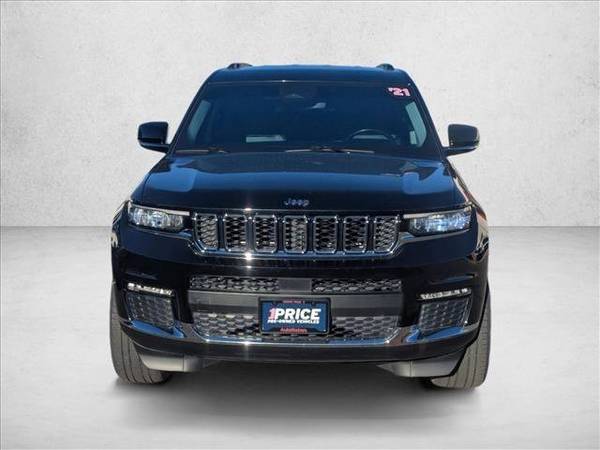 * Leather Seats * 3rd Row Seat * Diamond Black Crystal Pearlcoat * Lane Keeping Assist * Keyless Start * Rear Spoiler * Engine: 3.6L V6 24V Vvt Upg I W/Ess * Global Black; Capri Leather Seats * Tires: 265/60R18 Bsw A/S Lrr * Transmission: 8-Speed Automatic (850Re) * Wheels: 18" X 8.0" Fully Painted Aluminum 2This vehicle includes a Money-Back Guarantee* and passed our precise inspection process. Best of all the price you see is the price you pay. No haggling. No back and forth. No pressure. And this price is so good it is guaranteed. *Money-Back Guarantee is valid for 5 days or 250 miles, whichever comes first. Subject to certain terms and conditions. See store for details. Some restrictions apply.2021 Jeep Grand Cherokee L previously owned by an employee and traded in on a Wagoneer! This is a very well cared for Grand Cherokee L. This Jeep includes: DIAMOND BLACK CRYSTAL PEARLCOAT QUICK ORDER PACKAGE 22E GLOBAL BLACK, CAPRI LEATHER SEATS Heated Front Seat(s) Bucket Seats TRANSMISSION: 8-SPEED AUTOMATIC (850RE) (STD) 8-Speed A/T Transmission w/Dual Shift Mode A/T ENGINE: 3.6L V6 24V VVT UPG V6 Cylinder Engine Gasoline Fuel *Note - For third party subscriptions or services, please contact the dealer for more information.* Off-road or on the street, this Jeep Grand Cherokee L Limited handles with ease. Indulge yourself with one of the most highly crafted, most luxurious automobiles available today. This Jeep Grand Cherokee L Limited comes equipped with 4 wheel drive, which means no limitations as to how or where you can drive. Different terrains and varying weather conditions will have no effect as to how this vehicle performs. It's not a misprint. And the odometer isn't broken. This is a very low mileage Jeep Grand Cherokee L. A rare find these days. Added comfort with contemporary style is the leather interior to heighten the quality and craftsmanship for the Jeep Grand Cherokee L Limited.
