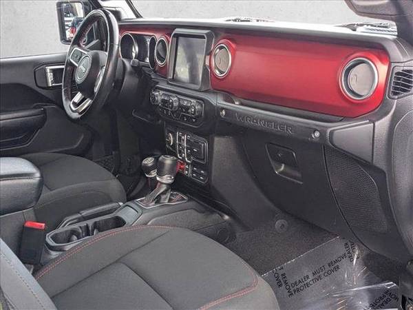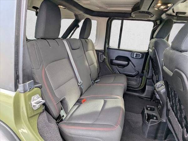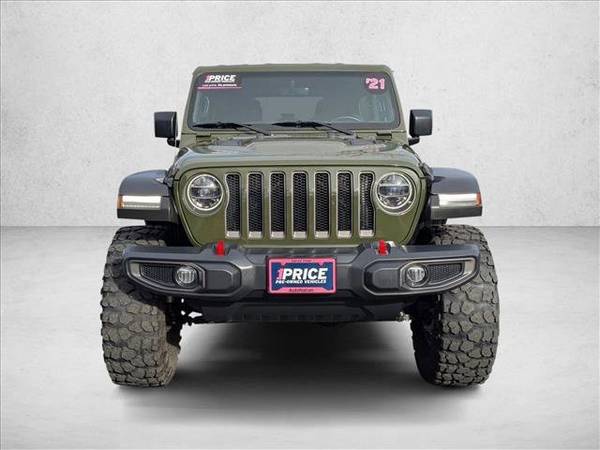 * Transmission: 8-Speed Automatic (850Re) * 8.4" Radio & Premium Audio Group * Led Lighting Group * Alpine Premium Audio System * Cold Weather Group * Trailer Tow & Hd Electrical Group * Engine: 3.6L V6 24V Vvt Etorque Upg I * Remote Proximity Keyless Entry * Remote Start System * Navigation System * Sarge Green Clearcoat * Soft Top Window Storage Bag * Keyless Start * Convertible Soft Top * 4.10 Rear Axle Ratio * Black; Premium Cloth Low-Back Bucket Seats * Front License Plate Bracket * Gvwr: 5;800 Lbs * Performance Suspension * Radio: Uconnect 4C Nav W/8.4" Display * Tires: Lt285/70R17C Bsw Off-Road * Wheels: 17" X 7.5" Machined W/Black Pockets2021 Jeep Wrangler Unlimited Rubicon Built for the Ones Who Dont Ask Can It Go There? but When Do We Leave? AutoNation Dodge Ram Broadway 5600 S Broadway, Littleton, CO 720.842.7793 33,756 Miles 1 Owner Clean Carfax When you step into a 2021 Jeep Wrangler Unlimited Rubicon , youre not just choosing a vehicle. Youre choosing a capability standard . This Rubicon, finished in the rugged and sought-after Sarge Green , comes fully equipped for drivers who want real 4x4 performance, modern tech, and the kind of durability that only a Rubicon can deliver. WHY THIS RUBICON IS THE ONE YOU WANT One-owner, clean Carfax Legendary 4:1 Rock-Trac Heavy-Duty Part-Time 4WD System Tru-Lok front and rear axles + front disconnecting stabilizer bar Off-Road Plus mode & rock-protection sill rails 3.6L V6 24V VVT eTorque engine for smooth, efficient power 8-speed automatic transmission Trail-ready. Road-comfortable. Adventure-built. This is the machine Jeep loyalists look for the configuration serious off-roaders want. PREMIUM FEATURES & PACKAGES Cold Weather Group Heated front seats Heated steering wheel Remote start Trailer-Tow & Heavy-Duty Electrical Group Class II receiver hitch 7- & 4-pin wiring 700-amp maintenance-free battery Auxiliary switches LED Lighting Group LED headlamps LED tail lamps 8.4-Inch Radio & Premium Audio Group 8.4 Uconnect 4C NAV Alpine premium audio GPS nav + SiriusXM services Wi-Fi hotspot capability Black Sunrider soft top 17 machined wheels with black pockets Full-size spare Ambient LED interior lighting Apple CarPlay & Android Auto Premium cloth seating Leather-wrapped steering wheel ParkView rear back-up camera Everything you need for mountain passes, highway miles, and the long way home. KEY DETAILS Year: 2021 Model: Wrangler Unlimited Rubicon Miles: 33,756 Owners: 1 History: Clean Carfax Engine: 3.6L V6 eTorque Transmission: 8-Speed Automatic Exterior: Sarge Green Interior: Black Premium Cloth This Rubicon is the perfect blend of off-road mastery and everyday comfort. Ready for trails, ready for town, ready for anything you point it toward. Come experience why Rubicon is the name Jeep built its legend on. OPTIONS AT TIME OF OEM PRODUCTION