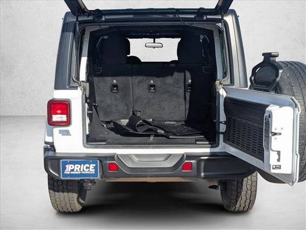 * Transmission: 8-Speed Automatic (850Re) * Black 3-Piece Hard Top * Keyless Start * Convertible Hardtop * 3.45 Rear Axle Ratio * Black; Cloth Low-Back Bucket Seats * Bright White Clearcoat * Front License Plate Bracket * Gvwr: 5;500 Lbs * Tires: 255/70R18 All Season * Wheels: 18" X 7.5" Polished W/Gray Spokes * Engine: 2.0L I4 Dohc Di Turbo W/EssThis vehicle includes a Money-Back Guarantee* and passed our precise inspection process. Best of all the price you see is the price you pay. No haggling. No back and forth. No pressure. And this price is so good it is guaranteed. *Money-Back Guarantee is valid for 5 days or 250 miles, whichever comes first. Subject to certain terms and conditions. See store for details. Some restrictions apply.This 2021 Jeep Wrangler Unlimited Sahara is offered to you for sale by AutoNation CDJR Southwest. This Jeep includes: ENGINE: 2.0L I4 DOHC DI TURBO W/ESS *CREDIT* 4 Cylinder Engine Gasoline Fuel Turbocharged *Note - For third party subscriptions or services, please contact the dealer for more information.* The Jeep Wrangler is the benchmark all other SUVs strive to meet. With exceptional power, towing and handling, this SUV can handle anything thrown at it. This 4WD-equipped vehicle handles any condition on- or off-road with the sure footedness of a mountain goat. With unequaled traction and stability, you'll drive with confidence in any weather with this Bright White Clearcoat 2021 4WD Jeep Wrangler Unlimited Sahara. Know exactly what you're getting when you take home this Jeep Wrangler as past service records are included. The interior of this Jeep Wrangler Unlimited Sahara has been through meticulous inspection and could almost pass for a brand new vehicle. This vehicle's exterior has been babied. The paint is in excellent condition with nearly zero flaws or signs of age.