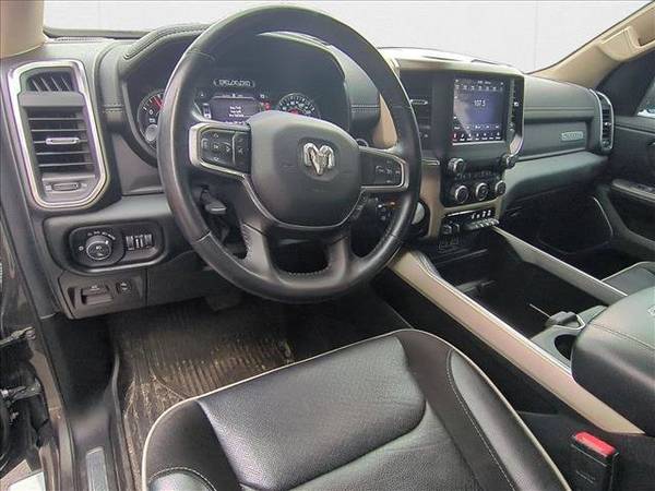 * Engine: 3.0L V6 Turbo Diesel Gen 3 * Laramie Level A Equipment Group * Dual-Pane Panoramic Sunroof * Wheels: 20" X 9" Premium Paint/Polished * Black; Leather Trimmed Bucket Seats * Chrome Appearance Group * Wheel To Wheel Side Steps * Panoramic Roof * Leather Seats * Anti-Spin Differential Rear Axle * Parksense Front/Rear Park Assist W/Stop * Protection Group * Trailer Brake Control * Cold Weather Group * Granite Crystal Metallic Clearcoat * Mopar Front & Rear Rubber Floor Mats * Engine Block Heater * Keyless Start * Cooled Front Seat(S) * 3.21 Rear Axle Ratio * Front License Plate Bracket * Gvwr: 7;200 Lbs * Monotone Paint * Tires: 275/55R20 Owl All Season * Transmission: 8-Speed Automatic (8Hp75) (Dfv)This vehicle includes a Money-Back Guarantee* and passed our precise inspection process. Best of all the price you see is the price you pay. No haggling. No back and forth. No pressure. And this price is so good it is guaranteed. *Money-Back Guarantee is valid for 5 days or 250 miles, whichever comes first. Subject to certain terms and conditions. See store for details. Some restrictions apply.This 2021 Ram 1500 Laramie is proudly offered by AutoNation CDJR Southwest This Ram includes: BLACK, LEATHER TRIMMED BUCKET SEATS Leather Seats Bucket Seats GRANITE CRYSTAL METALLIC CLEARCOAT QUICK ORDER PACKAGE 28H LARAMIE TRAILER BRAKE CONTROL PROTECTION GROUP Tow Hooks MOPAR FRONT Floor Mats ANTI-SPIN DIFFERENTIAL REAR AXLE Locking/Limited Slip Differential DUAL-PANE PANORAMIC SUNROOF Panoramic Roof Generic Sun/Moonroof Sun/Moonroof WHEELS: 20" Tires - Front Performance Aluminum Wheels Tires - Rear Performance *Note - For third party subscriptions or services, please contact the dealer for more information.* The best part about this well-maintained vehicle is that it is a CARFAX one-owner vehicle. Indulge yourself with one of the most highly crafted, most luxurious automobiles available today. This 4WD-equipped vehicle handles any condition on- or off-road with the sure footedness of a mountain goat. With unequaled traction and stability, you'll drive with confidence in any weather with this Granite Crystal Metallic Clearcoat 2021 4WD Ram 1500 Laramie. This low mileage Ram 1500 has barely been touched. It's the next best thing to buying new. Added comfort with contemporary style is the leather interior to heighten the quality and craftsmanship for the Ram 1500 Laramie. With past service records included, feel comfortable knowing that the history of this Ram 1500 Laramie is provided in order for you to make a knowledgeable decision. Pre-owned doesn't have to mean "used." The clean interior of this Ram 1500 makes it one of the nicest you'll find. This Ram 1500 Laramie comes standard with features that are essential in the 21st Century. However, Ram decided to take it one step further and add a handful of quintessential options that will undoubtedly add to this vehicle's quality and value. This vehicle has been well-cared for inside and out. The paint is flawless with no damage or obvious signs of wear.