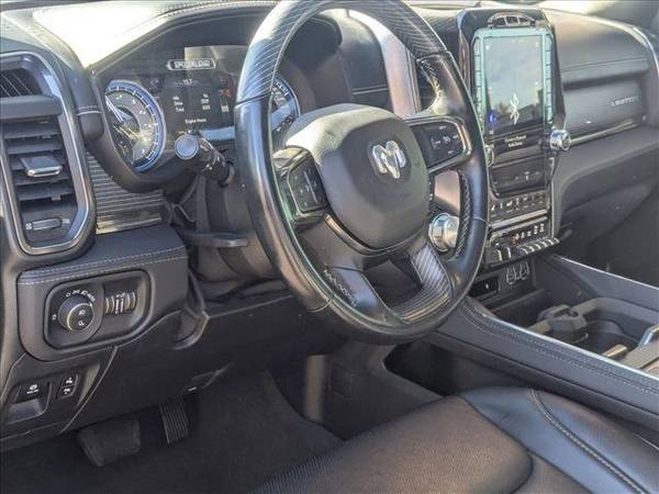 * Night Edition * Dual-Pane Panoramic Sunroof * Panoramic Roof * Tri-Fold Tonneau Cover * Leather Seats * Navigation System * Trailer Brake Control * Granite Crystal Metallic Clearcoat * 3.92 Rear Axle Ratio * Keyless Start * Cooled Front Seat(S) * Black; Premium Leather Trimmed Bucket Seats * Engine: 5.7L V8 Hemi Mds Vvt Etorque * Front License Plate Bracket * Gvwr: 7;100 Lbs * Tires: 285/45R22Xl Bsw All Season * Transmission: 8-Speed Automatic (8Hp75) * Wheels: 22" X 9" Black AluminumAutoNation Ford Arapahoe is excited to offer this 2021 Ram 1500 Limited. This Ram includes: DUAL-PANE PANORAMIC SUNROOF Panoramic Roof Generic Sun/Moonroof Sun/Moonroof ENGINE: 5.7L V8 HEMI MDS VVT ETORQUE 8 Cylinder Engine Gasoline Fuel TRAILER BRAKE CONTROL BLACK, PREMIUM LEATHER TRIMMED BUCKET SEATS Leather Seats Bucket Seats GRANITE CRYSTAL METALLIC CLEARCOAT 3.92 REAR AXLE RATIO TRANSMISSION: 8-SPEED AUTOMATIC (8HP75) (STD) 8-Speed A/T Transmission w/Dual Shift Mode A/T QUICK ORDER PACKAGE 27M LIMITED *Note - For third party subscriptions or services, please contact the dealer for more information.* This Ram 1500 Limited is for the discerning driver who demands the utmost of his vehicle. This 4WD-equipped vehicle handles any condition on- or off-road with the sure footedness of a mountain goat. With unequaled traction and stability, you'll drive with confidence in any weather with this Granite Crystal Metallic Clearcoat 2021 4WD Ram 1500 Limited. Intricately stitched leather and ergonomic design seats are among the details in which test drivers say that Ram 1500 Limited is in a league of its own