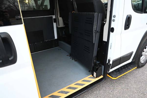 Door Opening Height: 66" and Lift width: 32". 2021 Ram ProMaster 1500 Low Roof SunSet Vans Manual Side Entry Fold Out Ramp van for Sale. Converted by SunSet Vans, this Full-Sized van has been fitted with a side-load fold out ramp for your transportation needs. It includes the rare dual slider doors, and wheelchair restraint pucks. With a 32 inch wide ramp this is a great option for larger wheelchair passengers who need the space. This van is well designed for ease of loading and a comfortable spacious ride. Accommodates 6 seated passengers plus two wheelchair users. This exceptionally handy ProMaster runs great, has been well maintained, has a New transmission with full Ram warranty, and is in good shape. It has clean Colorado title, but has a total loss on CarFax. Also features; beautiful white exterior, gray cloth interior, with black vinyl rear seats, steel wheels with hubcaps, tires have 30% tread life left, Uconnect 5? Display AM/FM sound system with CD player and AUX port, hot Heat and Cold AC with rear system controls, power windows, mirrors, and locks, keyless remote, cruise control, rear barn doors, front and side-curtain airbags, anti-lock brakes, traction and stability control, active seat belts, and rear back-up camera. Smooth and efficient 3.6L 6-cylinder Chrysler motor with front wheel drive, and much more. This vehicle is offered for sale by Mobility Auto Group. With two Colorado locations at: 1500 W Campus Drive, Littleton CO 80120 & 2311 S Platte River Drive, Denver CO 80223. We don't charge a Dealer Handling Fee and are your mobility one-stop-shop. Just give us a call as we offer it all: sales, service, parts, and rentals. Open M-F 9am - 6pm. Sat by appt. Call (844) 289-2635.