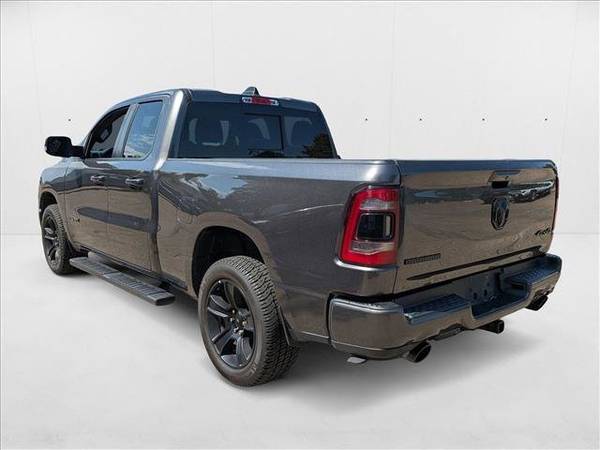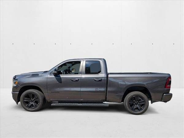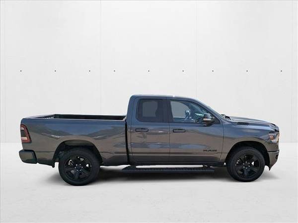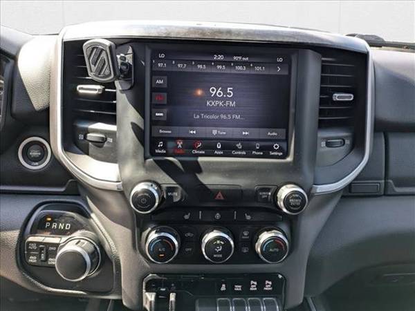 * Big Horn Level 2 Equipment Group * Engine: 5.7L V8 Hemi Mds Vvt * Night Edition * Premium Lighting Group * Bed Utility Group * Black; Deluxe Cloth Bucket Seats * Anti-Spin Differential Rear Axle * Parksense Front/Rear Park Assist W/Stop * Trailer Brake Control * Remote Start System * Granite Crystal Metallic Clearcoat * Pick-Up Box Lighting * Mopar Front & Rear Rubber Floor Mats * 115V Auxiliary Power Outlet * 3.92 Rear Axle Ratio * Keyless Start * Front License Plate Bracket * Gvwr: 7;100 Lbs * Radio: Uconnect 4 W/8.4" Display * Tires: 275/55R20 Owl All Season * Transmission: 8-Speed Automatic (8Hp75) * Wheels: 20" X 9.0" Premium Paint/PolishedThis vehicle includes a Money-Back Guarantee* and passed our precise inspection process. Best of all the price you see is the price you pay. No haggling. No back and forth. No pressure. And this price is so good it is guaranteed. *Money-Back Guarantee is valid for 5 days or 250 miles, whichever comes first. Subject to certain terms and conditions. See store for details. Some restrictions apply.This Ram includes: QUICK ORDER PACKAGE 25Z BIG HORN BLACK, DELUXE CLOTH BUCKET SEATS Cloth Seats Power Driver Seat Driver Adjustable Lumbar Bucket Seats PREMIUM LIGHTING GROUP Fog Lamps ENGINE: 5.7L V8 HEMI MDS VVT 8 Cylinder Engine Gasoline Fuel GRANITE CRYSTAL METALLIC CLEARCOAT TRANSMISSION: 8-SPEED AUTOMATIC (8HP75) 8-Speed A/T Transmission w/Dual Shift Mode A/T 3.92 REAR AXLE RATIO TRAILER BRAKE CONTROL BED UTILITY GROUP Bed Liner MOPAR FRONT Floor Mats BIG HORN LEVEL 2 EQUIPMENT GROUP Multi-Zone A/C Driver Vanity Mirror Remote Engine Start Integrated Turn Signal Mirrors HD Radio Passenger Vanity Mirror A/C Power Mirror(s) Heated Steering Wheel Climate Control Auto-Dimming Rearview Mirror Rear Parking Aid Universal Garage Door Opener Heated Mirrors Security System Rear Defrost AM/FM Stereo Power Driver Seat Heated Front Seat(s) Satellite Radio Tow Hitch Adjustable Pedals Bluetooth Connection Passenger Illuminated Visor Mirror Driver Illuminated Vanity Mirror Power Folding Mirrors Requires Subscription Driver Adjustable Lumbar MP3 Capability *Note - For third party subscriptions or services, please contact the dealer for more information.* Opulent refinements married with exceptional engineering make this the kind of car you'll want to own for a lifetime. No matter the terrain or weather, you'll drive at ease in this 4WD-equipped vehicle. With exceptional safety features and superb handling, this 4WD was engineered with excellence in mind. Surprising quality accompanied by a high level of performance...this Granite Crystal Metallic Clearcoat on Black Ram 1500 Big Horn could end up being the perfect match for you.