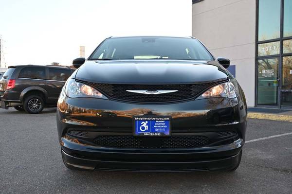Door Opening Height: 56.5" and ramp width: 30". 2022 Chrysler Voyager LX BraunAbility XT Fold Out Manual Side Entry van for sale. Built by Braun, this XT is designed with a fully lowered floor, manually operated bi-fold ramp, high 56.5 inch door opening, front passenger seat is fully removable, fold down rear seat footrests, Q'Straint manual wheelchair straps and rails throughout, super quiet ride, with independent rear suspension. This disability equipped handicap wheelchair accessible ramp van LX model comes packed with Chrysler's newest safety features like: Beautiful Black exterior, some dings and dents, normal for it's milage, black cloth interior, Alloy Wheels, tires have 70% tread, 3-Zone Climate Control, front step flares, touch screen, AM/FM/CD/Satellite system with Bluetooth, AUX port, tons of USB ports, power windows, mirrors, and locks, advanced key-less remote, remote start, back-up camera, power lift gate, dual power side doors, cruise control, traction control, stability control, 4-wheel ABS system, smooth and efficient 3.6L 6-cylinder Chrysler motor with front wheel drive, & much more. This vehicle is offered for sale by Mobility Auto Group. With two Colorado locations at: 1500 W Campus Drive, Littleton CO 80120 & 2311 S Platte River Drive, Denver CO 80223. We don't charge a Dealer Handling Fee and are your mobility one-stop-shop. Just give us a call as we offer it all: sales, service, parts, and rentals. Open M-F 9am - 6pm. Sat by appt. Call (844) 289-2635.