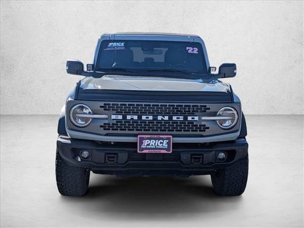 * Equipment Group 333A High Package * Transmission: 10-Speed Automatic * Engine Block Heater * Lane Keeping Assist * Keyless Start * Convertible Soft Top * Black Onyx; Marine Grade Vinyl Bucket Seats * Cactus Gray * Engine: 2.3L Ecoboost I-4 * Front License Plate BracketAutoNation Ford Arapahoe is excited to offer this 2022 Ford Bronco Badlands. This Ford includes: ENGINE: 2.3L ECOBOOST 4 Cylinder Engine Gasoline Fuel Turbocharged *Note - For third party subscriptions or services, please contact the dealer for more information.* This Ford Bronco offers all the comforts of a well-optioned sedan with the utility you demand from an SUV. This Ford Bronco Badlands's level of quality is not meant for just anyone. It's meant for the person who strives for a classy, comfortable, and luxurious car. When Ford created this vehicle with 4 wheel drive, they immediately enhanced the performance ability. Easily switch between two and four wheel drive to take advantage of the improved traction. It's not a misprint. And the odometer isn't broken. This is a very low mileage Ford Bronco. A rare find these days.