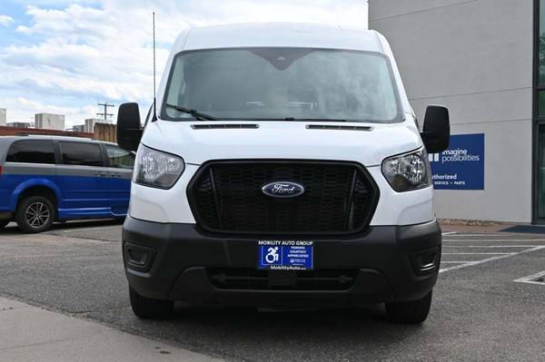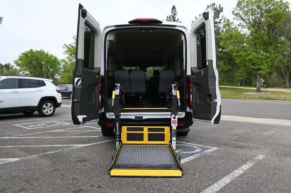 Door Opening Height: 69" and width: 34" w/ 53" long lift. Used 2022 Ford Transit T-350 XL Medium Roof 148 WB AWD 3.5L EcoBoost with a new BraunAbility Power Rear Entry Lift Van for Sale. Built with a New BraunAbility Rear Power lift and L-Track anchor pucks. This disability equipped handicap wheelchair accessible vehicle is for all your transportation and mobility needs. The rear includes 2 rows of fixed leg seats in the rear plus 2 Ford OEM seats up front for 7+1 wheelchair seating. This unit comes with an Q-Straint retracting wheelchair restraint set and shoulder seatbelt harness. The new body-style Transit features updated interior with great Standard Ford safety features, which include: 4 wheel disc brakes with brake assist, Dual front impact and side airbags, traction control, stability control, and rear parking camera. Also features; White exterior, black vinyl interior with gray vinyl rear seating, steel wheels with hubcaps, tires with 50% tread, Preferred Equipment package, Rear Lighting, Rubberized flooring, Reverse Sensing System, AM/FM sound system with AUX port, hot Heat and Cold AC, power windows, mirrors, and locks, keyless remote, 1000lb capacity Braun lift, rear barn doors, back up camera, smooth and efficient 3.5L 6-cylinder Ford motor with all wheel drive, and much more. This vehicle is offered for sale by Mobility Auto Group. With two Colorado locations at: 1500 W Campus Drive, Littleton CO 80120 & 2311 S Platte River Drive, Denver CO 80223. We don't charge a Dealer Handling Fee and are your mobility one-stop-shop. Just give us a call as we offer it all: sales, service, parts, and rentals. Open M-F 9am - 6pm. Sat by appt. Call (844) 289-2635.