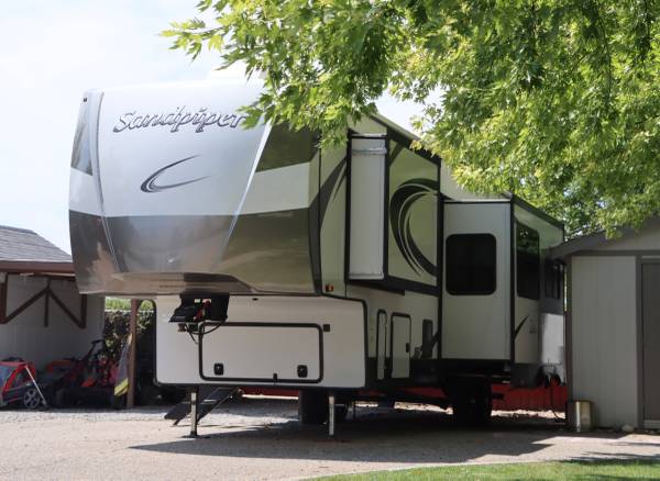 42 feet 4 inches is the total length - 13 feet 4 inches is the height - 96 inches is the width - GVWR is 13,841 pounds - 50amp plug in - Tank sizes, Fresh water 50 gallons, grey 156 gallons, & black 52 gallons - There are separate grey & black tanks for both bathrooms - Both black tanks have a hose connection so you can rinse them out - After every trip the black tanks have been rinsed until clean water comes out - After market springs have been added to axels to provide additional support - Nice size electric awning in excellent condition - Large pass through storage in the front - Jack controls & solar controls are located in the pass through storage - 4 electric jacks with manual & auto level - Would recommend having jacks reset every year (Since they are electric they can get glitchy when they have not been reset and calibrated in a while) - Large compartment behind the hitch with 2 batteries stored inside - Side compartment that goes underneath the back bedroom - Side compartment with mini fridge (please note the fridge sits low in the compartment so the door catches when you open it) - Sturdy steps for both doors - Front has been washed after every trip to remove stuck on bugs - Decals/paint are in excellent condition, a few minor chips on the front - All lights in excellent working order - Trailer brakes in excellent working order - Wheel bearings have been packed every year since new - Spare tire has never been used - Power cord & all sewer hoses included - BMW 5th wheel slide hitch included with purchase.