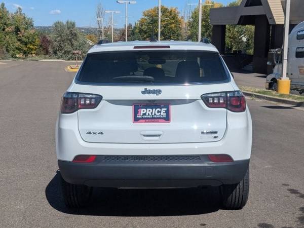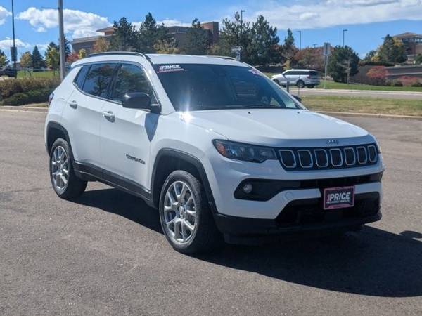The following items have been reconditioned on this vehicle: all new tires! * Leather Seats * Lane Keeping Assist * Keyless Start * Rear Spoiler * Black; Leather Trimmed Bucket Seats * Bright White Clearcoat * Engine: 2.4L I4 Zero Evap M-Air W/Ess * Front License Plate Bracket * Transmission: 9-Speed 948Te AutomaticThis vehicle includes a Money-Back Guarantee* and passed our precise inspection process. Best of all the price you see is the price you pay. No haggling. No back and forth. No pressure. And this price is so good it is guaranteed. *Money-Back Guarantee is valid for 5 days or 250 miles, whichever comes first. Subject to certain terms and conditions. See store for details. Some restrictions apply.This Jeep includes: ENGINE: 2.4L I4 ZERO EVAP M-AIR W/ESS (STD) 4 Cylinder Engine Gasoline Fuel *Note - For third party subscriptions or services, please contact the dealer for more information.* Treat yourself to an SUV that surrounds you with all the comfort and conveniences of a luxury sedan. Take home this Jeep Compass Latitude Lux, and you will have the power of 4WD. It's a great feature when you need to drive over tricky terrain or through inclement weather. You can tell this 2022 Jeep Compass has been pampered by the fact that it has less than 28,286mi and appears with a showroom shine. Added comfort with contemporary style is the leather interior to heighten the quality and craftsmanship for the Jeep Compass Latitude Lux.