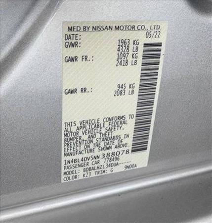The following items have been reconditioned on this vehicle: new pair of tires! * [L94] Floor Mats/Trunk Mat/Hideaway Net * Keyless Start * [C03] 50 State Emissions * Brilliant Silver Metallic * Charcoal; Cloth Seat TrimThis vehicle includes a Money-Back Guarantee* and passed our precise inspection process. Best of all the price you see is the price you pay. No haggling. No back and forth. No pressure. And this price is so good it is guaranteed. *Money-Back Guarantee is valid for 5 days or 250 miles, whichever comes first. Subject to certain terms and conditions. See store for details. Some restrictions apply.The impressive Nissan fuel-efficiency will make you quickly realize what you've been missing out on in life. It's noteworthy fuel economy and minimal emissions make this vehicle's value a cut above the rest.