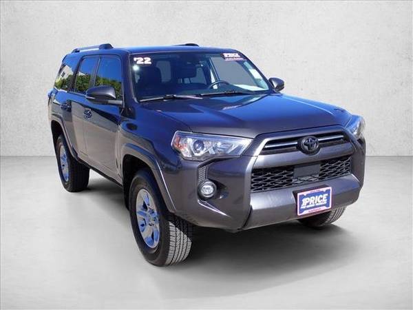 * Keyless Start * Rear Spoiler * 50 State Emissions * Black/Graphite; Softex Seat Trim * Magnetic Gray Metallic * Sr5 Premium Package W/Softex * Keep It Wild SavingsThis vehicle includes a Money-Back Guarantee* and passed our precise inspection process. Best of all the price you see is the price you pay. No haggling. No back and forth. No pressure. And this price is so good it is guaranteed. *Money-Back Guarantee is valid for 5 days or 250 miles, whichever comes first. Subject to certain terms and conditions. See store for details. Some restrictions apply.Looking for a clean, well-cared for 2022 Toyota 4Runner? This is it. Treat yourself to an SUV that surrounds you with all the comfort and conveniences of a luxury sedan. This Toyota 4Runner SR5 Premium's level of quality is not meant for just anyone. It's meant for the person who strives for a classy, comfortable, and luxurious car. No matter the terrain or weather, you'll drive at ease in this 4WD-equipped vehicle. With exceptional safety features and superb handling, this 4WD was engineered with excellence in mind. The easiest choice in purchasing your next vehicle is choosing one with a detailed history like this gently driven pre-owned vehicle. Pre-owned doesn't have to mean used. The clean interior of this Toyota 4Runner makes it one of the nicest you'll find. Treat yourself to a Toyota 4Runner SR5 Premium that's got it all. Nearly every option is packed into this beautiful ride. This unbelievably rare Toyota 4Runner SR5 Premium is a perfect example of The Best Man Can Build.
