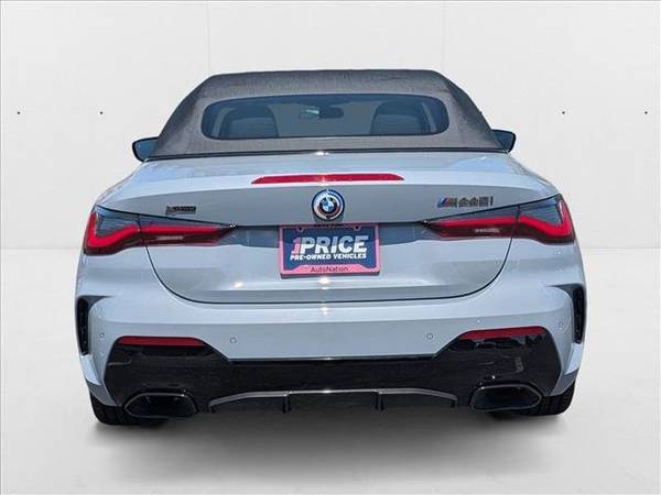 * M Carbon Exterior Package * Premium Package * Driving Assistance Professional Package * Black W/Blue Stitching; Vernasca Leather Upholstery * Harman/Kardon Surround Sound System * Parking Assistance Package * Brooklyn Gray Metallic * Neck Warmer * Wheels: 19" X 8" M Double-Spoke Jet Black * Heated Front Seats * Leather Seats * Wireless Charging * Navigation System * Shadowline Package * Remote Engine Start * Moonlight Black Soft Top * Bmw M 50 Years Emblems * Heated Steering Wheel * Lane Keeping Assist * Keyless Start * Heads-Up Display * Convertible Soft Top * Aluminum Trim W/Mesh EffectContact AutoNation USA Denver Broadway today for information on dozens of vehicles like this 2023 BMW 4 Series M440i xDrive. This BMW includes: BMW M 50 YEARS EMBLEMS (DISC) M CARBON EXTERIOR PACKAGE WIRELESS CHARGING MOONLIGHT BLACK SOFT TOP Convertible Soft Top WHEELS: 19 Tires - Front Performance Tires - Rear Performance HEATED STEERING WHEEL Heated Steering Wheel NECK WARMER REMOTE ENGINE START Remote Engine Start ALUMINUM TRIM W/MESH EFFECT PARKING ASSISTANCE PACKAGE Aerial View Display System PREMIUM PACKAGE Navigation System Heated Steering Wheel Heated Front Seat(s) Heads-Up Display BLACK W/BLUE STITCHING, VERNASCA LEATHER UPHOLSTERY Leather Seats HARMAN/KARDON SURROUND SOUND SYSTEM Premium Sound System HEATED FRONT SEATS Heated Front Seat(s) SHADOWLINE PACKAGE LED Headlights BROOKLYN GRAY METALLIC DRIVING ASSISTANCE PROFESSIONAL PACKAGE Lane Departure Warning Lane Keeping Assist Cruise Control Steering Assist Adaptive Cruise Control Driver Monitoring Evasion Assist Cross-Traffic Alert Front Collision Mitigation *Note - For third party subscriptions or services, please contact the dealer for more information.* If you're looking for a great pre-owned convertible, look no further. This exceptional car has all the features you want. Quality and prestige abound with this BMW 4 Series M440i xDrive. This wonderfully fuel-efficient vehicle offers a supple ride, quick acceleration and superior styling without sacrificing MPGs. Navigate through all the icky weather with ease in this AWD-equipped BMW 4 Series, and even get non-stop traction for your non-stop lifestyle! In addition to the amazing traction control, you may even qualify for an insurance reduction with this AWD vehicle. This 2023 BMW 4 Series has such low mileage it has been parked more than driven. You'll see the world in a whole new way thanks to the navigation system that comes with this vehicle. Added comfort with contemporary style is the leather interior to heighten the quality and craftsmanship for the BMW 4 Series M440i xDrive.