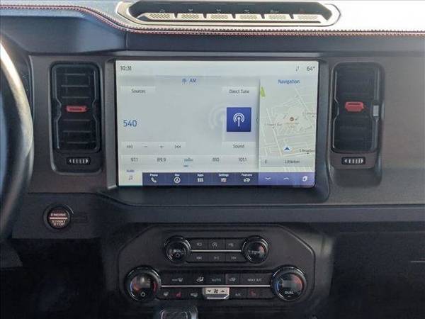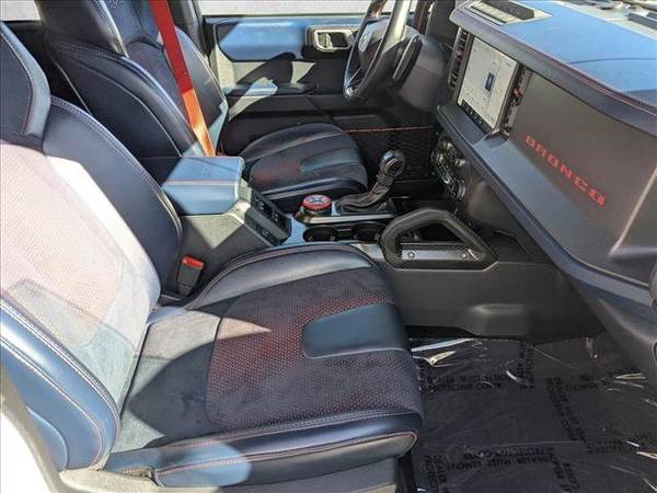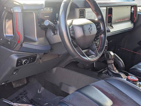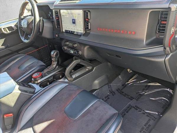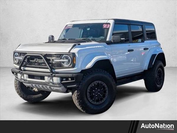 The following items have been reconditioned on this vehicle: new battery! * Equipment Group 374A Lux Package * Blue W/Black Onyx; Leather-Trimmed/Vinyl Bucket Seats W/Blue/Black * Wheels: 17" Dark Carbonized Gray Alloy Painted * Interior Carbon Fiber Pack 6 * Dual Moonroof * Leather Seats * Navigation System * Code Orange Accent Seat Belts * Front Row Top Panels & Door Storage Bags * Keyless Entry Keypad * Lane Keeping Assist * Keyless Start * Engine: 3.0L Ecoboost V6 * Hard Top Sound Deadening Headliner * Oxford White * Transmission: 10-Speed Automatic2023 Ford Bronco Raptor Unleash the Wild Step into the 2023 Ford Bronco Raptor , a one-owner, 7,571-mile beast built to dominate the roadand the terrain beyond. This isnt just an SUVits freedom in motion , with every line, every curve, and every feature engineered to thrill. Why the Bronco Raptor Commands Attention: Performance That Roars: Rugged off-road capability, adaptive cruise for smooth control, and a lux package designed for both adventure and luxury. Intense Style & Tech: Black beadlock wheels , Code Orange seat belts, and an interior carbon fiber pack combine with leather 374A interior for pure presence. Driver-Centric Features: Heated steering wheel, cutting-edge infotainment, and intuitive controls that make every drive effortless. Adventure-Ready: Off-road durability meets modern conveniencenavigate trails, city streets, or open highways with confidence. Peace of Mind: Clean Carfax, single-owner historyproof that this Raptor has been primed for excellence. Available at AutoNation Dodge RAM Broadway 5600 S Broadway, Littleton, CO , 720.842.7793 Claim the Thrill: Own a vehicle that doesnt just take you placesit commands them . Step into the 2023 Ford Bronco Raptor and feel the pulse of adventure beneath your hands. Options at time of OEM production.