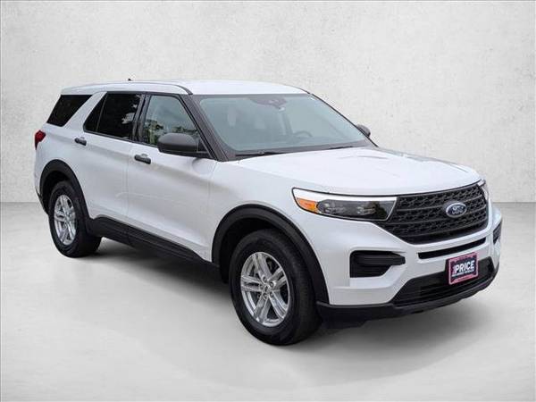 * 3rd Row Seat * Front & Second Row Floor Liners (16B) * Engine Block Heater * Lane Keeping Assist * Rear Spoiler * Daytime Running Lamps (Drl) (Non-Configurable) * Engine: 3.3L Ti-Vct V6 Ffv * Equipment Group 100A * Front License Plate Bracket * Oxford White * Sandstone; Cloth Captain'S Chairs * Transmission: 10-Speed Automatic * 4G Lte Wi-Fi Hotspot Credit * Auto Start-Stop RemovalAUTONATION FORD LITTLETON 8252 S BROADWAY LITTLETON CO 80122 303-578-6106 This Ford includes: ENGINE: 3.3L TI-VCT V6 FFV Flex Fuel Capability V6 Cylinder Engine *Note - For third party subscriptions or services, please contact the dealer for more information.* This SUV gives you versatility, style and comfort all in one vehicle. Taking the road less traveled has never been more fun than with this 4WD. With improved performance, mileage and acceleration, this 2023 4WD Ford Explorer Base is king of the off-road. It's not often you find just the vehicle you are looking for AND with low mileage. This is your chance to take home a pre-owned and barely driven Ford Explorer. Call now to set up a test drive! 303-578-6106
