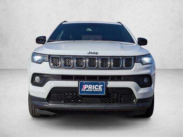 * Lane Keeping Assist * Keyless Start * Rear Spoiler * Black; Premium Cloth/Vinyl Bucket Seats * Bright White Clearcoat * Engine: 2.0L I4 Dohc Di Turbo W/Ess * Front License Plate Bracket * Transmission: 8-Speed Automatic 8F30This vehicle includes a Money-Back Guarantee* and passed our precise inspection process. Best of all the price you see is the price you pay. No haggling. No back and forth. No pressure. And this price is so good it is guaranteed. *Money-Back Guarantee is valid for 5 days or 250 miles, whichever comes first. Subject to certain terms and conditions. See store for details. Some restrictions apply.You can find this 2023 Jeep Compass Latitude and many others like it at AutoNation CDJR Southwest. This Jeep includes: ENGINE: 2.0L I4 DOHC DI TURBO W/ESS (STD) 4 Cylinder Engine Gasoline Fuel Turbocharged *Note - For third party subscriptions or services, please contact the dealer for more information.* The best part about this well-maintained vehicle is that it is a CARFAX one-owner vehicle. This Jeep Compass offers all the comforts of a well-optioned sedan with the utility you demand from an SUV. This vehicle was engineered to be both economically and environmentally friendly with exceptional fuel efficiency. Where do you want to go today? With 4WD, you can choose to drive virtually anywhere and on terrain 2WD vehicles can't handle. Service records are included with the purchase of this well-maintained pre-owned vehicle. Adjectives like impeccable, spotless, and immaculate can be used to describe how clean this Jeep Compass Latitude is, causing it to feel more like a new vehicle than a pre-owned one. The first thing anyone notices about your car is the paint job and this car's is near perfect.