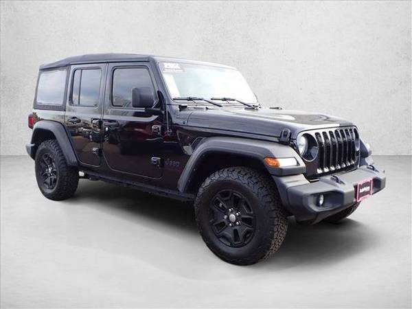 * Transmission: 8-Speed Automatic (850Re) * Black Clearcoat * Deep Tint Sunscreen Windows * Mopar All-Weather Floor Mats * Keyless Start * Convertible Soft Top * 3.45 Overall Top Gear Ratio * Black; Cloth Low-Back Bucket Seats * Engine: 2.0L I4 Dohc Di Turbo W/Ess * Gvwr: 5;400 Lbs * Tires: 245/75R17 All SeasonThis vehicle includes a Money-Back Guarantee* and passed our precise inspection process. Best of all the price you see is the price you pay. No haggling. No back and forth. No pressure. And this price is so good it is guaranteed. *Money-Back Guarantee is valid for 5 days or 250 miles, whichever comes first. Subject to certain terms and conditions. See store for details. Some restrictions apply.This outstanding example of a 2023 Jeep Wrangler Sport is offered by AutoNation Chrysler Jeep Arapahoe. This Jeep includes: MOPAR ALL-WEATHER FLOOR MATS Floor Mats BLACK CLEARCOAT ENGINE: 2.0L I4 DOHC DI TURBO W/ESS 4 Cylinder Engine Gasoline Fuel Turbocharged DEEP TINT SUNSCREEN WINDOWS Privacy Glass TRANSMISSION: 8-SPEED AUTOMATIC (850RE) 8-Speed A/T Transmission w/Dual Shift Mode 4-Wheel Disc Brakes A/T ABS QUICK ORDER PACKAGE 22B SPORT BLACK, CLOTH LOW-BACK BUCKET SEATS Cloth Seats Bucket Seats *Note - For third party subscriptions or services, please contact the dealer for more information.* This Jeep Wrangler has been loved by its original owner as CARFAX shows it to be a one-owner. With no signs of paint damage, the exterior of this Jeep Wrangler Sport is sure to impress. Just because it's pre-owned doesn't mean it can't look new. AutoNation Certified vehicles are sold after an inspection of up to 125 points and carry a 90-day, 4000 mile warranty