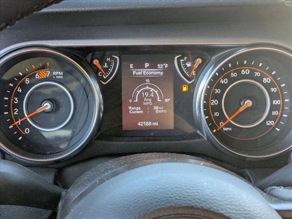 * Transmission: 8-Speed Automatic (850Re) * Xtreme 35 Tire Package * Black 3-Piece Hard Top * Safety Group * Convenience Group * Mopar Hinge-Gate Reinforcement * Sting-Gray Clearcoat * Keyless Start * Convertible Hardtop * 35" Tire Suspension * 4.56 Rear Axle Ratio * Black; Cloth Low-Back Bucket Seats * Engine: 2.0L I4 Dohc Di Turbo W/Ess * Gvwr: 5;900 Lbs (2;676 Kg) * Tires: Lt315/70R17C 113/110S * Wheels: 17" X 8" Beadlock CapableThis vehicle includes a Money-Back Guarantee* and passed our precise inspection process. Best of all the price you see is the price you pay. No haggling. No back and forth. No pressure. And this price is so good it is guaranteed. *Money-Back Guarantee is valid for 5 days or 250 miles, whichever comes first. Subject to certain terms and conditions. See store for details. Some restrictions apply.This Jeep includes: STING-GRAY CLEARCOAT ENGINE: 2.0L I4 DOHC DI TURBO W/ESS 4 Cylinder Engine Gasoline Fuel Turbocharged TRANSMISSION: 8-SPEED AUTOMATIC (850RE) 8-Speed A/T Transmission w/Dual Shift Mode 4-Wheel Disc Brakes A/T ABS BLACK, CLOTH LOW-BACK BUCKET SEATS Cloth Seats Bucket Seats BLACK 3-PIECE HARD TOP Targa Roof Rear Defrost Convertible Hardtop *Note - For third party subscriptions or services, please contact the dealer for more information.* The Wrangler Sport doesn't disappoint, and comes with all the quality and understated opulence buyers have come to expect from the respected Jeep marque. A truly versatile SUV, this vehicle will please even the most discerning of buyers. Want to brave the road less traveled? You'll have the 4WD capabilities to do it with this vehicle. The look is unmistakably Jeep, the smooth contours and cutting-edge technology of this Jeep Wrangler Sport will definitely turn heads.