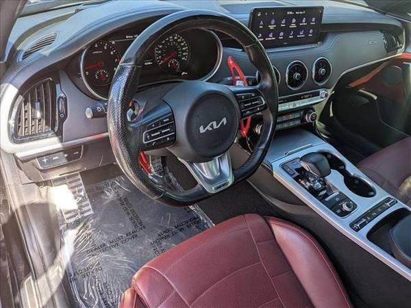 * Sun/Moonroof * Leather Seats * Navigation System * Red Interior Color Package * Lane Keeping Assist * Keyless Start * Heads-Up Display * Cooled Front Seat(S) * Aurora Black * Black; Seat Trim2023 Kia Stinger GT2 AWD Aurora Black, 42,086 Miles Power, Precision, Destiny Available now at AutoNation Dodge Ram Broadway , 5600 S Broadway, Littleton, CO , 720.842.7793 This isnt just a car. Its a summons to velocity. The 2023 Kia Stinger GT2 AWD in Aurora Black is a machine forged for those who refuse mediocrity, who demand both elegance and ferocity from their driving experience. Beneath its sleek silhouette lies a 3.3L Twin-Turbo GDI V6 engine , paired with an 8-speed automatic transmission with paddle shifters . With Brembo brakes , Drive Mode Select , and Dynamic Torque Vectoring AWD , the Stinger GT2 doesnt simply moveit commands, it cuts, it conquers. Performance That Thrills 3.3L Twin-Turbo V6 raw strength refined by precision engineering Brembo Braking System track-bred control at your fingertips Dynamic Torque Vectoring AWD intelligent power in every curve Drive Mode Select sculpt your ride from comfort to fury Safety & Intelligence in Motion Kias Drive Wise suite makes every drive both exhilarating and protected: Forward Collision-Avoidance & Lane Keeping Assist Blind-Spot Collision-Avoidance & Rear Cross-Traffic Assist Surround View Monitor & Blind-Spot View Monitor Smart Cruise Control w/ Stop & Go Head-Up Display eyes forward, future-focused Luxury Meets Technology Inside, the Stinger GT2 is a cockpit of elegance and control: 10.25 Navigation Touchscreen w/ Android Auto & Apple CarPlay Harman/Kardon Premium Audio System sound that roars as fiercely as the engine Nappa Leather Seats w/ Chain Volume Stitching tactile artistry Heated & Ventilated Power Front Seats + Heated Rear Seats Wireless Charger & Multiple USB Ports LED Interior Lighting w/ Multi-Color Selection atmosphere, personalized Exterior Presence 19 Alloy Wheels w/ Michelin All-Season Tires grip and glory Sunroof (Wide Type) sky belongs to you Full LED Projection Headlights clarity that cuts through the dark Aurora Black Finish sleek, shadow-born dominance The 2023 Kia Stinger GT2 AWD is not a car to be driven casuallyit is a declaration , a statement that you will not settle for less than thrilling. With only 42,086 miles , this Stinger is primed for its next chapter, and it demands a driver worthy of its power. Call 720.842.7793 or visit AutoNation Dodge Ram Broadway today. Do not wait. Vehicles like this vanish into legend. - DISCLAIMER: Options at time of OEM production.