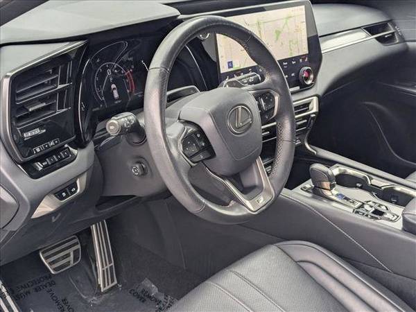 * Premium Triple-Beam Led Headlamps * Radio: Lexus Interface W/14" Hd Touchscreen Display * Panoramic Roof * Traffic Jam Assist * Panorama Glass Roof * Premium Paint (Pj) * Navigation System * Accessory Package (Z1) * Digital Rearview Mirror * Power Rear Door W/Kick Sensor * Cold Area Package * Lane Keeping Assist * Keyless Start * Rear Spoiler * Heads-Up Display * Cooled Front Seat(S) * Bgm - Back Monitor * Black W/Dark Graphite; F Sport Nuluxe Seat Trim * F Sport Handling Package * Ultra WhiteThis vehicle includes a Money-Back Guarantee* and passed our precise inspection process. Best of all the price you see is the price you pay. No haggling. No back and forth. No pressure. And this price is so good it is guaranteed. *Money-Back Guarantee is valid for 5 days or 250 miles, whichever comes first. Subject to certain terms and conditions. See store for details. Some restrictions apply.2023 LEXUS RX 350 F SPORT HANDLING AWD Accident Avoidance Systems Active Suspension Adaptive Cruise Control Adaptive Headlights Additional Airbags Adjustable Lumbar Support Adjustable Suspension Android Auto Anti-Theft System Apple Carplay Approach Lights Auto-dimming Rearview Mirror Automatic Climate Control Black Roof Rails Blind Spot Warning Bluetooth Braking Assist Camera-based Rearview Mirror Check Rear Seat Reminder Connected Car Connected Car Integrated Apps Cooled Seats Cornering Brake Control Crash Sensors Curtain Airbags Customizable Instrument Display Driver Assistance Package Dual-Zone Climate Control Electronic Braking System Electronic Messaging Assistance Electronic Traction Control Fog Lights Front Sport Bucket Seats Ground Effects Package Head-Up Display Heated Seats Heated Side Mirrors Heated Windshield Lane Keeping Assist Leather Shift Knob Leather Steering Wheel Leatherette Upholstery Memorized Seat Settings Moonroof / Sunroof Multi-Function Display Navigation System On Demand 4WD Paddle Shifter Panoramic Moonroof / Sunroof Parking Sensors Power Liftgate Power Seats Power Telescoping Steering Wheel Push-Button Start Radio Data System Real Time Traffic Rear Air Conditioning Rear Car Approach Warning Rear Cross Traffic Alert Rear Headrests Rear Privacy Glass Rear Spoiler Rearview Camera Remote Engine Start Safety Brake Pedal System Satellite Radio Side Airbags Sport Suspension Stability Control Steering Wheel Mounted Controls Tire Pressure Monitoring System Traffic Sign Recognition Turn Signal Mirrors USB Audio Input Voice Activated Commands Wi-Fi Compatible Wireless Charging Station