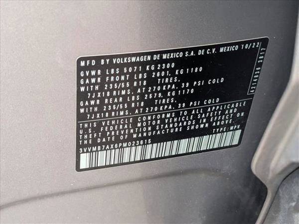 * Lane Keeping Assist * Keyless Start * Rear Spoiler * Pyrite Silver Metallic * Titan Black; Perforated V-Tex Leatherette Seating Surfaces2023 VOLKSWAGEN TIGUAN SE 4MOTION AWD Accident Avoidance Systems Adaptive Cruise Control Adjustable Lumbar Support Alloy Wheels Android Auto Anti-Theft System Apple Carplay Approach Lights Auto Start/Stop Auto-dimming Rearview Mirror Automatic Climate Control Blind Spot Warning Bluetooth Braking Assist Bucket Seats Chrome Grille Connected Car Connected Car Integrated Apps Crash Sensors Curtain Airbags Driver Assistance Package Dual Exhaust Dual-Zone Climate Control Electronic Braking System Electronic Messaging Assistance Electronic Traction Control Front Bucket Seats Heated Seats Heated Side Mirrors Lane Keeping Assist Leather Shift Knob Leatherette Upholstery Moonroof / Sunroof Multi-Function Display On Demand 4WD Panoramic Moonroof / Sunroof Power Liftgate Power Seats Push-Button Start Radio Data System Rear Cross Traffic Alert Rear Headrests Rear Privacy Glass Rear Spoiler Rearview Camera Remote Engine Start Safety Brake Pedal System Satellite Radio Side Airbags Silver Roof Rails Stability Control Steering Wheel Mounted Controls Sunroof Package Third Row Seating Tire Pressure Monitoring System Trailer Hitch Turbocharger Turn Signal Mirrors USB Audio Input Vinyl Steering Wheel Voice Activated Commands Wi-Fi Compatible Wireless Charging Station