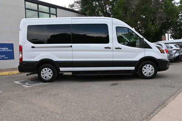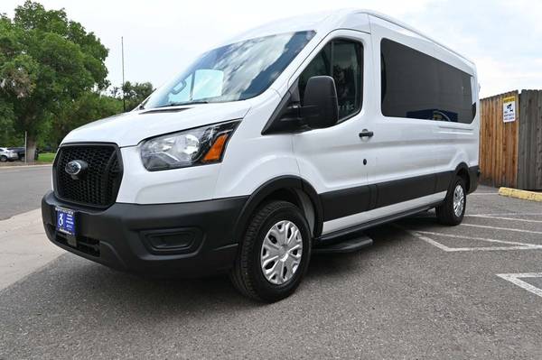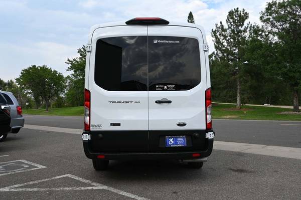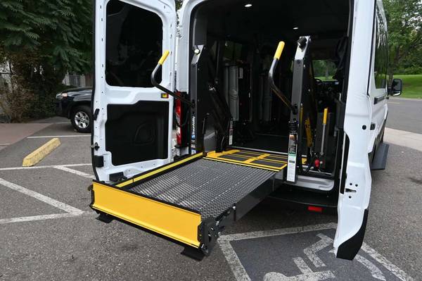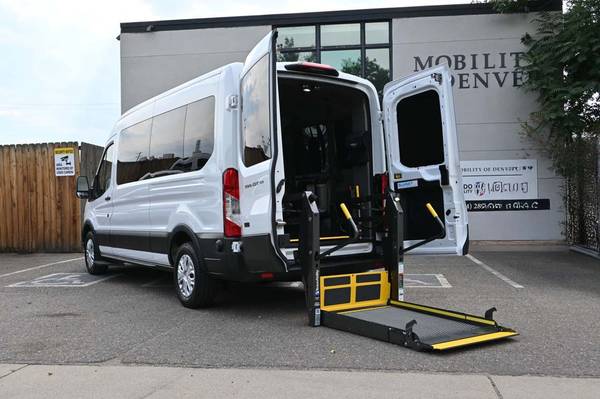 Door Opening Height: 61" and width: 33.5". New 2024 Ford Transit XL T150 Medium Roof BraunAbility Power Rear Entry Lift Van for Sale. Built by Sunset Vans, this disability equipped handicap wheelchair accessible vehicle has been fitted with a new rear-load commercial BraunAbility lift for your transportation and mobility needs. The rear includes three rows of flip up Freedman Seats: 3 two person benches seats and 2 singles, for 10 seated passengers plus up to 2 wheelchair positions. This unit comes with wheelchair restraints and shoulder seatbelt harness. The New Transit features updated interior with great Standard Ford safety features, which include: 4 wheel disc brakes with brake assist, Dual front impact and side airbags, traction control, stability control, parking sensors, and rear parking camera. Also features; White exterior, black vinyl interior with gray vinyl rear seats, steel wheels with hubcaps, new tires, upgraded touchscreen with AM/FM system, Bluetooth, USB and AUX port, hot Heat and Cold AC, power windows, mirrors, and locks, keyless remote, 800lb capacity Braun lift, rear barn doors, back up camera, smooth and efficient 3.5L 6-cylinder Ford motor with rear wheel drive, and much more. This vehicle is offered for sale by Mobility Auto Group. With two Colorado locations at: 1500 W Campus Drive, Littleton CO 80120 & 2311 S Platte River Drive, Denver CO 80223. We don't charge a Dealer Handling Fee and are your mobility one-stop-shop. Just give us a call as we offer it all: sales, service, parts, and rentals. Open M-F 9am - 6pm. Sat by appt. Call (844) 289-2635.