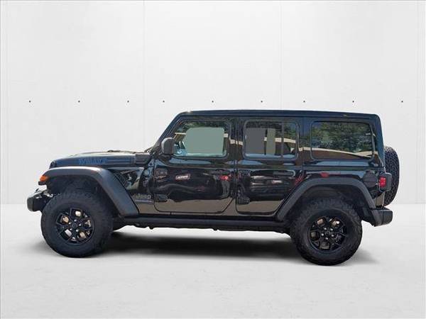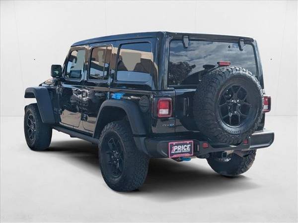 * Sky 1-Touch Power Top * Convenience Group * Black Clearcoat * Keyless Start * Convertible Hardtop * Black; Cloth Low-Back Bucket Seats * Engine: 2.0L I4 Dohc Di Turbo Phev * Front License Plate Bracket * Tires: Lt285/70R17C Bsw Off-Road * Transmission: 8-Speed Auto 8P75Ph PhevThis vehicle includes a Money-Back Guarantee* and passed our precise inspection process. Best of all the price you see is the price you pay. No haggling. No back and forth. No pressure. And this price is so good it is guaranteed. *Money-Back Guarantee is valid for 5 days or 250 miles, whichever comes first. Subject to certain terms and conditions. See store for details. Some restrictions apply.Looking for a clean, well-cared for 2024 Jeep Wrangler 4xe? This is it. Check it out today at Autonation Chrsyler Jeep West! This Jeep includes: SKY 1-TOUCH POWER TOP Panoramic Roof Rear Defrost Convertible Hardtop Generic Sun/Moonroof Sun/Moonroof BLACK CLEARCOAT QUICK ORDER PACKAGE 29W WILLYS Fog Lamps Locking/Limited Slip Differential Daytime Running Lights LED Headlights ENGINE: 2.0L I4 DOHC DI TURBO PHEV (STD) 4 Cylinder Engine Turbocharged Plug-In Electric/Gas BLACK, CLOTH LOW-BACK BUCKET SEATS Cloth Seats Bucket Seats TRANSMISSION: 8-SPEED AUTO 8P75PH PHEV (STD) 8-Speed A/T Transmission w/Dual Shift Mode A/T CONVENIENCE GROUP Keyless Start Remote Engine Start Heated Steering Wheel Universal Garage Door Opener Heated Front Seat(s) Power Door Locks Keyless Entry Telematics Requires Subscription *Note - For third party subscriptions or services, please contact the dealer for more information.* CARFAX shows that this is a one-owner vehicle -- no wonder it's in such great condition. With this exceptional SUV, you'll get sport, utility, and comfort. Pull up in the vehicle and the valet will want to parked on the front row. This Jeep Wrangler 4xe Willys is the vehicle others dream to own. Don't miss your chance to make it your new ride. Take home this Jeep Wrangler 4xe Willys, and you will have the power of 4WD. It's a great feature when you need to drive over tricky terrain or through inclement weather. This pre-owned Jeep Wrangler 4xe looks like new with a clean interior that's been well-kept. Feel pleased in your decision to buy this Jeep Wrangler 4xe as it's still covered under the manufacturer's warranty.