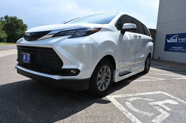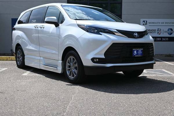 Door Opening Height: 57" and ramp width: 30".?*Qualifies for a $1,000 Toyota Mobility Rebate. New 2025 Toyota Sienna XLE VMI NorthStar power in-floor Hybrid FWD Side Entry rampvan for sale. Up to 120-month finance available. Brand new VMI conversion on an all new 2025 Sienna chassis with full manufacturers warranty. VMI's exclusive features beat out the competition: most useable room, highest ground clearance, interchangeable removable front seats, Durafloor+ rubberized flooring, 1,000lb capacity ramp, and galvanneal coating undercarriage protection. The new 2025 Toyota Sienna has an updated infotainment screen and features: bold new styling, tons of technology, Hybrid system and up to 36mpg Fuel Efficiency. XLE Model, White Exterior, Gray leather Interior, Toyota Safety Sense 2.0: Pre-Collision Sys w/ Pedestrian Detection, Full-Speed Range Dynamic Radar Cruise Control, Lane Departure Alert w/ Steering Assist, Lane Tracing Assist, Automatic High Beams, Road Sign Assist STAR Safety System LATCH-Lower Anchor & Tether for Children Blind Spot Monitor w/ RCTA 5-Door Smart Key w/ Push Button Start Safety & Remote Connect w/ 1-Year Trial, Audio Plus - 9-in Touchscreen, 8 Spkrs, HandsFree Bluetooth phone/Music, USB Media Port, 6 USB Charge Ports, SiriusXM w/ 3-Month All Access Trial, Android Auto & Apple CarPlay Compatible Four Zone Auto Climate Control SofTex-Trimmed Seats, Heated & Power Front Seats, 60/40 One-Motion-Stow w/Split 3rd Row Seat Rear Seat Reminder, Spare tire, 2.5L 4-Cylinder Engine 245 Combined Net Horsepower Electronic Continuous Var. Tran. (ECVT) 17-in Alloy Wheels Electronic On-Demand Front-Wheel Drive, LED Headlights with Auto on/off feature Hands-Free Dual Power Sliding SideDoors Power Liftgate Frt & Rear Parking Assist w/ Auto Brake Power Tilt / Slide Moonroof. This vehicle is offered for sale by Mobility Auto Group. With two Colorado locations at: 1500 W Campus Drive, Littleton CO 80120 & 2311 S Platte River Drive, Denver CO 80223. We don't charge a Dealer Handling Fee and are your mobility one-stop-shop. Just give us a call as we offer it all: sales, service, parts, and rentals. Open M-F 9am - 6pm. Sat by appt. Call (844) 289-2635.