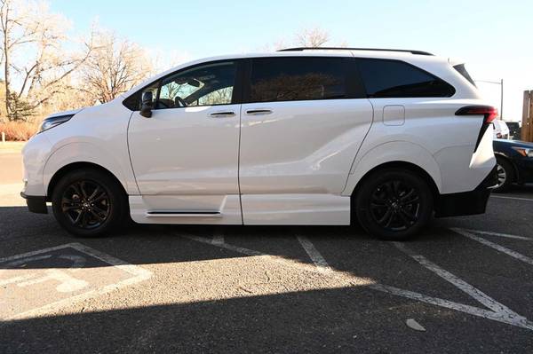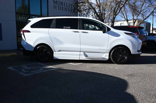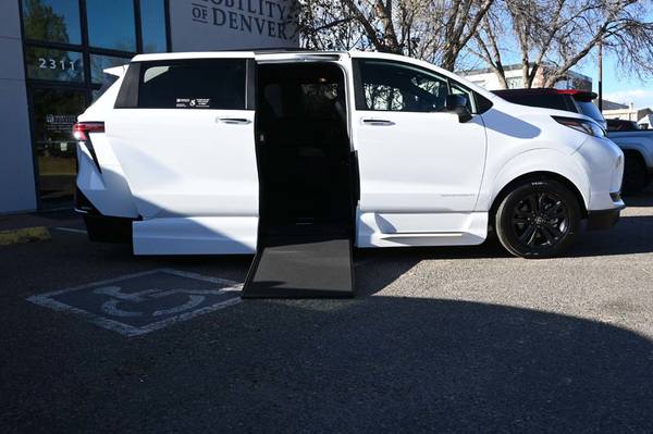 Door Opening Height: 56" and ramp width: 30".?IN-STOCK: *Qualifies for a $1,000 Toyota Mobility Rebate. New 2025 Toyota Sienna XSE VMI NorthStar Hybrid AWD Side Entry rampvan for sale. Up to 120-month finance available. Brand new VMI conversion on an all new 2025 Sienna chassis with full manufacturers warranty. The industry's first wheelchair accessible AWD minivan has arrived! VMI's exclusive features beat out the competition: most useable room, highest ground clearance, interchangeable removable front seats, Durafloor plus rubberized flooring, 1,000lb capacity ramp, galvanneal coating undercarriage protection, and Vantage Mobility's 2-remote system for greater control and reliability. Toyota Sienna features: bold new styling, tons of technology, Hybrid system with up to 36mpg Fuel Efficiency (go 500 miles on a tank of gas), and Electric on-demand AWD system. XSE Model, White Exterior, black leather Interior,?Toyota Safety Sense 2.0 w/Pre-Collision Advanced Rear Seat Reminder (Mobile alerts req. Safety Connect sub, up to 10 year trial incl.) 4G network dependent STAR Safety System LATCH-Lower Anchor & Tether for Child, Blind Spot Monitor w/Rear Cross-Traffic Alert Frt & Rear Parking Assist w/ Auto Brake 5-Door Smart Key w/ Push Button Start Connected Services Capable. 4G network dependent12.3-in. Toyota Audio Multimedia w/ 8-Speakers, Wireless Apple CarPlay and Android Auto Compatibility SiriusXM w/3-Month Trial USB Media Port, 6 USB Charge Ports Four Zone Auto Climate Control SofTex-Trimmed Seats, Heated & Power Front Seats, 60/40 One-Motion-Stow w/ Split & Stow 3rd Row Seat.?This vehicle is offered for sale by Mobility Auto Group. With two Colorado locations at: 1500 W Campus Drive, Littleton CO 80120 & 2311 S Platte River Drive, Denver CO 80223. We don't charge a Dealer Handling Fee and are your mobility one-stop-shop. Just give us a call as we offer it all: sales, service, parts, and rentals. Open M-F 9am - 6pm. Sat by appt. Call (844) 289-2635.
