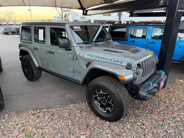 Lifted 2021 Jeep Wrangler Unlimited Rubicon 4xe hybrid 4WD, 35 inch tires, hard top, front and rear steel bumpers, remote start, tow package, front and rear locker axles, electronic sway bar disconnect, bluetooth, back up camera, 46k miles, still under warranty. One owner Colorado owned vehicle with clean Carfax report with no accident reported. Se habla espanol. We have financing from over 70 banks and credit unions. Please call or text 3035501951.