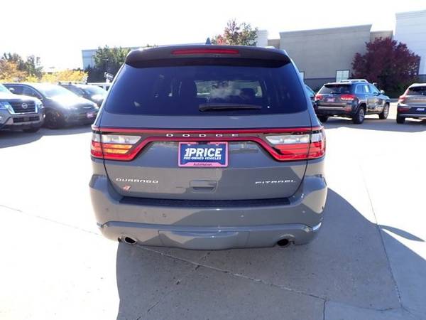 * Sun/Moonroof * Leather Seats * Navigation System * 3rd Row Seat * Destroyer Gray Clearcoat * Lane Keeping Assist * Keyless Start * Rear Spoiler * Cooled Front Seat(S) * 3.45 Rear Axle Ratio * Black; Nappa/Axis Ii Seats W/Rhombi Logo * Engine: 3.6L V6 24V Vvt Upg I W/Ess * Gvwr: 6;500 Lbs * Transmission: 8-Speed Automatic (850Re)This vehicle includes a Money-Back Guarantee* and passed our precise inspection process. Best of all the price you see is the price you pay. No haggling. No back and forth. No pressure. And this price is so good it is guaranteed. *Money-Back Guarantee is valid for 5 days or 250 miles, whichever comes first. Subject to certain terms and conditions. See store for details. Some restrictions apply.This outstanding example of a 2022 Dodge Durango Citadel is offered by AutoNation Chrysler Jeep Arapahoe. CARFAX shows that this is a one-owner vehicle -- no wonder it's in such great condition. There is no evidence of prior damage or paintwork on this Dodge Durango Citadel. AutoNation Certified vehicles are sold after an inspection of up to 125 points and carry a 90-day, 4000 mile warranty