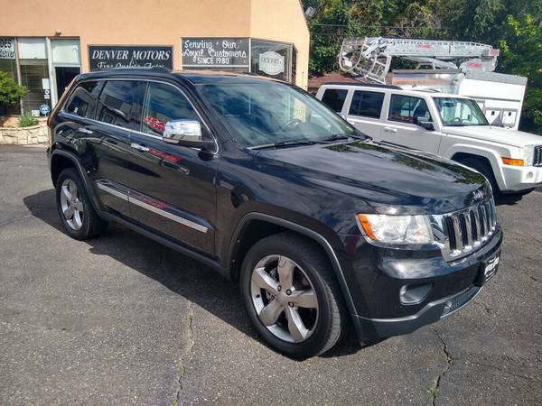THERE IS A DIFFERENCE! STUNNING 2013 JEEP GRAND CHEROKEE LIMITED! A LOCAL DENVER OWNED AND DEALER SERVICED ONE OWNER VEHICLE SINCE NEW, 100% ORIGINAL AND CORRECT AND IN PRISTINE CONDITION THRU-OUT! WITH ONLY 79K LOW LOW ACTUAL MILES! A PERFECT CARFAX REPORT SHOWING ONLY ONE OWNER AND NO ACCIDENTS OR DAMAGE EVER! WITH OVER 2O SERVICE RECORDS ON FILE! ALWAYS SERVICED BY THE JEEP DEALER IN FT COLLINS! SHOWS METICULOUS CARE. ALWAYS GARAGED, NEVER SMOKED-IN, NO SIGNS OF YOUNG CHILDREN OR PETS! MUST BE SEEN AND DRIVEN TO APPRECIATE ITS OUTSTANDING CONDITION! HAVE ALL THE BOOKS, EVEN THE ORIGINAL WINDOW STICKER, AND BOTH KEY FOBS, ALL SIGNS OF A CARING OWNER! FINISHED IN STUNNING OBSIDIAN METALLIC BLACK WITH EBONY LEATHER INTERIOR.THIS IS THE LIMITED MODEL FULLY OPTIONED WITH THE 5.7L HEMI ENGINE WITH CYLINDER REDUCTION, TOW PKG, NAVIGATION, PANORAMIC SUNROOF, KEYLESS ENTRY AND START, INFINITY SOUND AND MORE! IF YOU WANT AN AFFORDABLE LUXURY SUV IN PRISTINE CONDITION WITH NO MYSTERY TO IT'S HISTORY THIS IS IT! NICEST ONE ANYWHERE! JUST IN AND OFFERED BY DENVER MOTORS KNOWN FOR LOW MILEAGE ORIGINAL LUXURY VEHICLES SINCE 1980! AN AMERICAN OWNED AND OPERATED SMALL FAMILY BUSINESS WITH LARGE MORALS AND STANDARDS, IN A NO PRESSURE ENVIRONMENT! LOCATED @ 4490 SO BROADWAY ENGLEWOOD 80113 CALL 303-781-3100 www.denvermotors.co