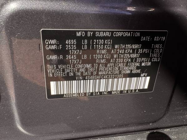 2019 Subaru Outback 2.5i Premium - $11,995BatchID: GRY4S1GIJ5