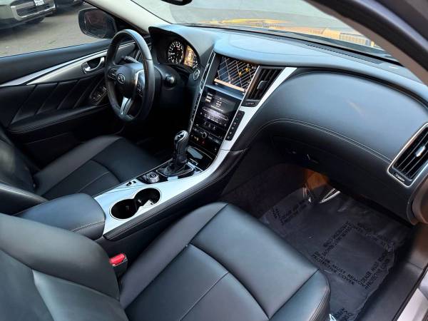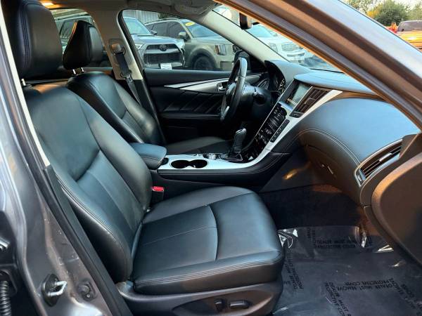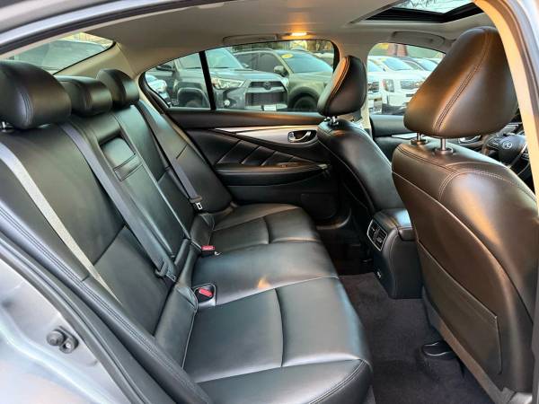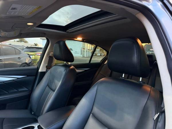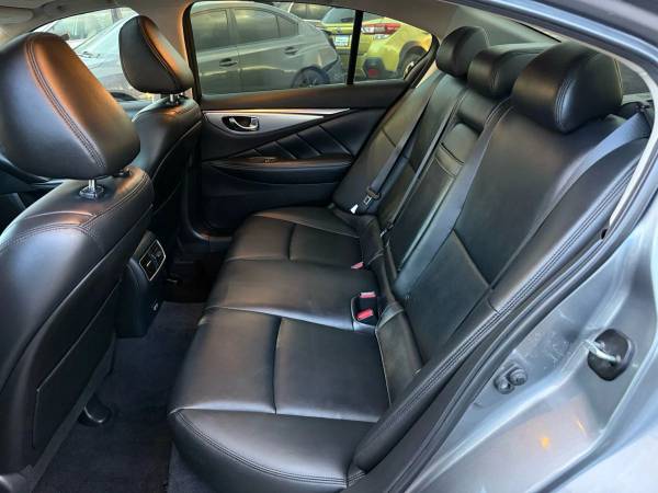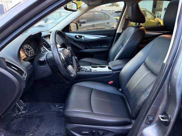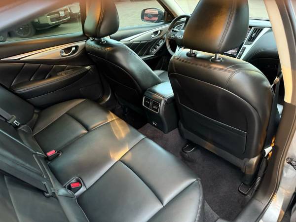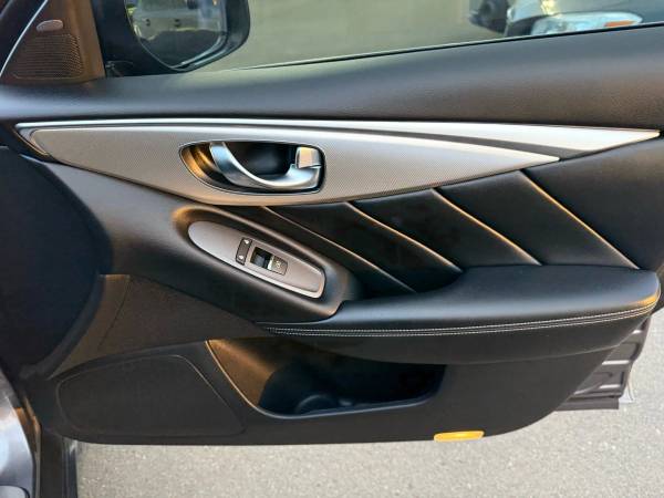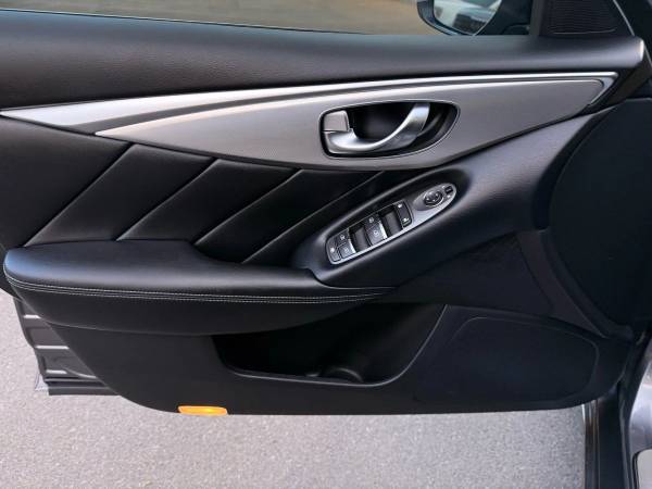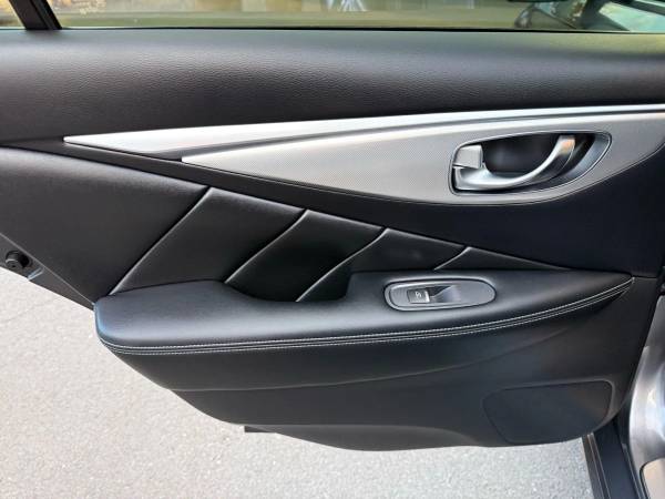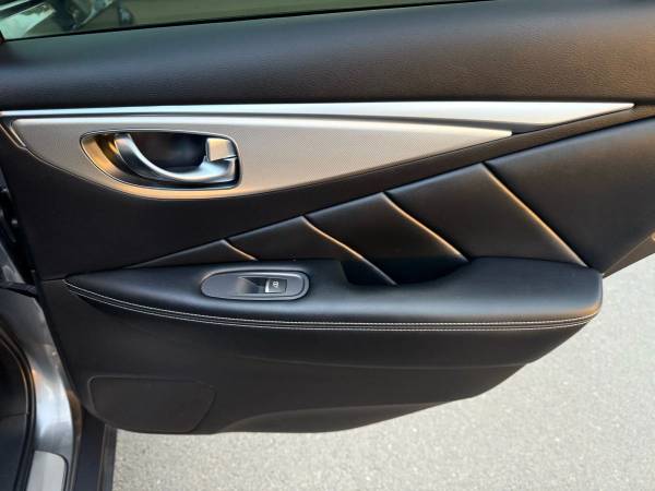 Alarm System, Backup Camera, Keyless Entry, CD/MP3 (Single Disc), Push Button Start, Daytime Running Lights, Tilt & Telescoping Wheel, Power Door Locks, Alloy Wheels, SiriusXM Satellite, Dual Power Seats, AM/FM/HD Radio, Air Conditioning, Vehicle Dynamic Control, Moon Roof, V6, Twin Turbo, 3.0 Liter, Fog Lights, Bluetooth Wireless, Power Steering, Infiniti InTouch, ABS (4-Wheel), AWD, Cruise Control, Hill Start Assist, Dual Air Bags, Side Air Bags, F&R Head Curtain Air Bags, Traction Control, Automatic, 7-Spd w/Manual Mode & Downshift Rev Matching Sedan Sedan 6 4 AWD V6, Twin Turbo, 3.0 Liter Gray Gasoline Black Automatic, 7-Spd w/Manual Mode & Downshift Rev Matching
