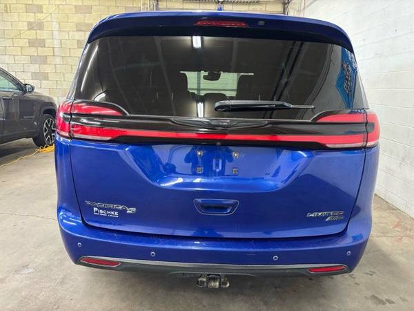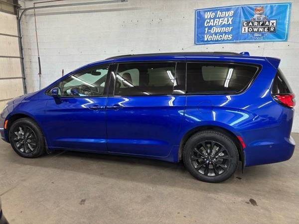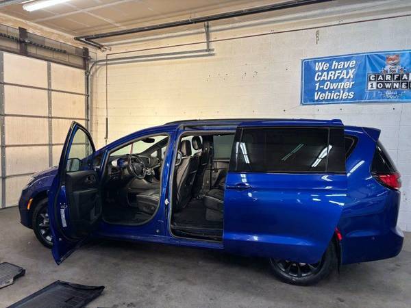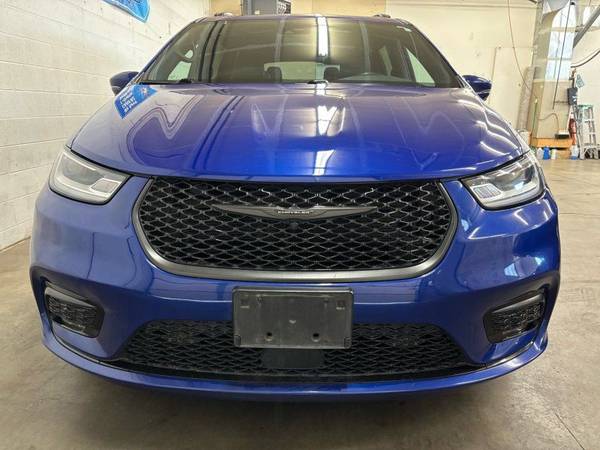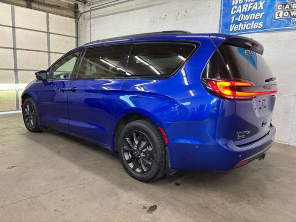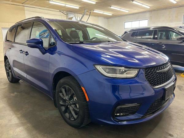 Experience the perfect blend of luxury and versatility with the 2021 Chrysler Pacifica Limited, an exceptional choice for families seeking style and functionality. Dressed in a stunning Ocean Blue Metallic Clear Coat, this minivan stands out with its S Appearance Package, featuring sleek black accents and premium aluminum wheels. The AWD drivetrain powered by a robust Pentastar 3.6L V6 engine ensures you have both power and control on any journey. Inside, indulge in comfort with premium leather-trimmed bucket seats while enjoying entertainment from the UConnect Theater Family Group's advanced multimedia system.