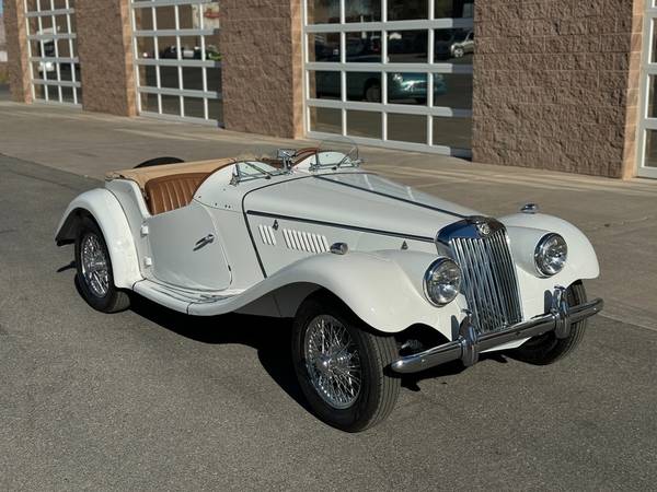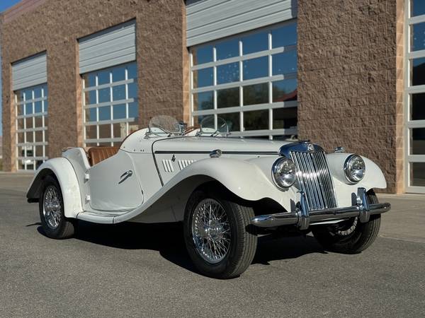 The MG TF represents the end of MG’s venerable T-Series. The TF roadster brought a more modern take to the TD by being 3 inches lower and sporting a sloping grill and faired-in headlights. The cars dashboard was redesigned, with central octagon gauges. Wire wheels were offered for the first time since the MG TC.