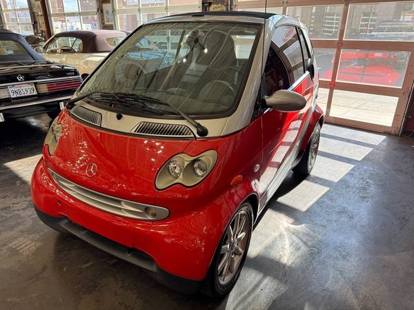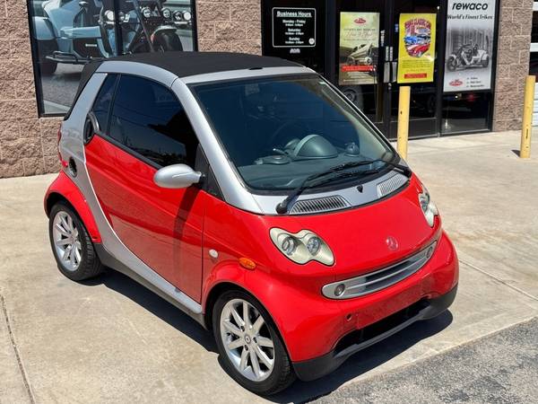 The smallest car from the European market, the SMART ForTwo by Mercedes, received a mid-life cycle impulse in 2003 and restyled this tiny car. The design team did an excellent job. New headlight design, 3 lamp taillights, and this one has a convertible top! Roomy cabin for 2, front trunk space, and GREAT gas mileage!