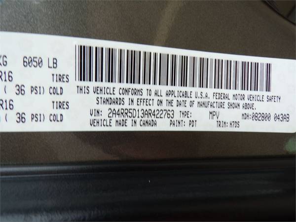 3.8 Liter V-6 Engine Automatic Transmission Power Windows Power Locks Power Mirrors Power Front Driver's Seat With Power Lumbar Cloth Seats Leather Wrapped Steering Wheel Dual Power Sliding Doors Power Rear Hatch Front & Rear A/C & Heat AM/FM/CD 110 Volt Inverter Tri-Zone Climate Control Cruise Control Tilt Steering Remote For Alarm/Locks/Sliding Doors/Rear Hatch Alloy Wheels Tinted Glass Steering Wheel Controls for Stereo Tachometer Luggage Rack Fog Lights Automatic Headlights Built-in Garage Door Opener Power Adjustabel Pedals