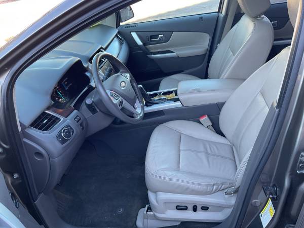 THIS IS A GRAY 2013 FORD EDGE LIMITED FWD SUV WITH NEUTRAL LEATHER, ROOF, NAVIGATION PWR WINDOWS/LOCKS, CHROME ALLOY WHEELS, AUTOMATIC TRANSMISSION, TINTED WINDOWS, KEYLESS ENTRY, HEATED DRIVERS SEAT, POWER SEATS, GOOD WINDSHIELD, CLEAN CARFAX,GOOD TIRES, WONT LAST PRICED TO SELL! PLEASE CALL TRENT AT 727-396-1578 WITH QUESTIONS OR TO SCHEDULE AN APPOINTMENT TO SEE THE CAR. THANKS IN ADVANCE FOR THE LOOK