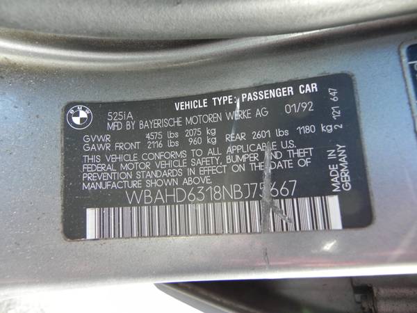 1992 BMW 525i Sedan, 51,513 Miles, Silver on Light Gray, OPTIONS: 2.5L I6 DOHC 24V Engine, Automatic Transmission, Rear Wheel Drive, A/C, Power Windows, Power Locks, Power Mirrors, Power Seats, Bluetooth Stereo, Sunroof, Alloy Wheels, Fog Lights and much more!!!