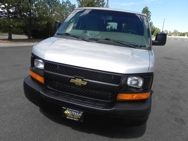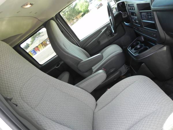 2014 Chevrolet Express LS 1500 Passenger Van, 27,603 Miles, Silver on Gray, OPTIONS: 5.3L V8 Engine, Automatic Transmission, Rear Wheel Drive, Traction Control, All Power Options, Cruise Control, A/C, Rear Air, Back Up Camera, CD Player, AUX, Cloth Interior and much more!!! *** HAS LIGHT HAIL DAMAGE ***