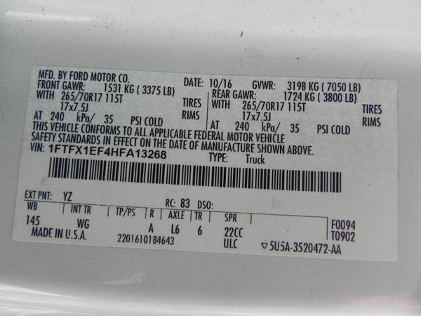 2017 Ford F-150 XL 4x4 Super Cab, 77,177 Miles, White on Gray, OPTIONS: 5.0L V8 Engine, Automatic Transmission, 4x4, A/C, All Power Options, Back Up Camera, Cloth Interior, Side Airbags, Trailer Brake, Hitch, Tool Box, Running Boards and much more!!!