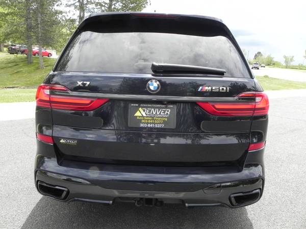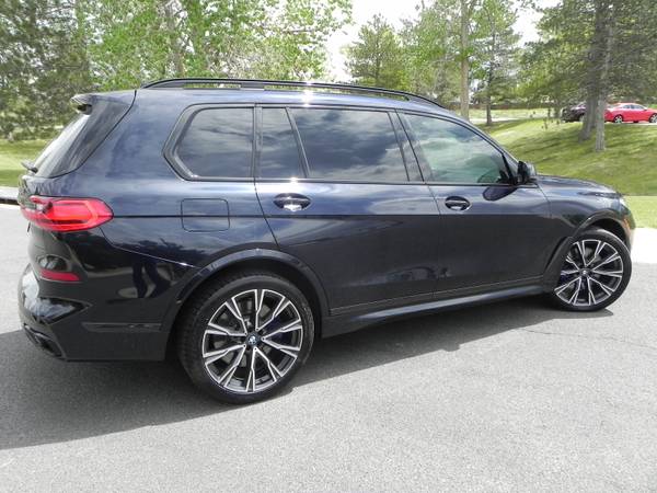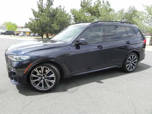 2020 BMW X7 M50i AWD, 104,892 Miles, Black Sapphire Metallic on Black, OPTIONS: 4.4L V8 Twin Turbo Engine, Sport Automatic Transmission, All Wheel Drive, 5 Zone Climate Control, All Power Options, ACTIVE DRIVING ASSISTANT: Front Collision Warning with City Collision Mitigation, Lane Departure Warning, Active Blind Spot Detection, Rear Cross Traffic Alert, Head Up Display, Navigation System, Back Up Camera, Panoramic Sunroof, COLD WEATHER PACKAGE: Front and Rear Heated Seats, Front Cooled Seats, Alcantara Headliner, M SPORT PACKAGE, M Sport Steering Wheel with Paddle Shifters, PREMIUM PACKAGE: Soft Close Doors, Rear Electric Window Shades, Second Row Captain’s Chairs, Harmon Kardon Surround Sound, Fog Lights, 22 Inch Alloy Wheels, Power Tailgate and much more!!!