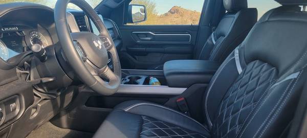 MECHANICAL 3.21 Rear Axle Ratio GVWR: 6,900 lbs 50 State Emissions Engine Auto Stop-Start Feature Electronic Transfer Case Engine Oil Cooler 730CCA Maintenance-Free Battery 48V Belt Starter Generator Trailer Wiring Harness 1810# Maximum Payload HD Shock Absorbers Front And Rear Anti-Roll Bars Single Stainless Steel Exhaust 26 Gal. Fuel Tank Auto Locking Hubs Short And Long Arm Front Suspension w/Coil Springs Solid Axle Rear Suspension w/Coil Springs Lithium Ion Traction Battery 0.43 kWh Capacity --- EXTERIOR Tires: 275/65R18 BSW All Season LRR Regular Box Style Steel Spare Wheel Clearcoat Paint Chrome Rear Step Bumper Chrome Front Bumper w/Chrome Rub Strip/Fascia Accent Black Side Windows Trim Black Door Handles Black Exterior Mirrors Convex Wide-Angle Exterior Mirror Insert Fixed Rear Window Galvanized Steel/Aluminum Panels Black Grille w/Chrome Surround RAM Grille Badge - Chrome Tailgate Rear Cargo Access Cargo Lamp w/High Mount Stop Light Perimeter/Approach Lights Laminated Glass --- ENTERTAINMENT 6 Speakers Streaming Audio Fixed Antenna 1 LCD Monitor In The Front --- INTERIOR Front Seat Back Map Pockets 4-Way Driver Seat -inc: Manual Recline and Fore/Aft Movement 4-Way Passenger Seat -inc: Manual Recline and Fore/Aft Movement Front Facing Cloth Rear Seat 3 Rear Seat Head Restraints Illuminated Front Cupholder Rear Cupholder Compass Valet Function HVAC -inc: Underseat Ducts and Console Ducts Locking Glove Box Full Cloth Headliner Metal-Look Gear Shifter Material Interior Trim -inc: Deluxe Sound Insulation, Metal-Look Instrument Panel Insert, Metal-Look Door Panel Insert and Chrome/Metal-Look Interior Accents Vinyl Door Trim Insert Day-Night Rearview Mirror Mini Overhead Console and 1 12V DC Power Outlet Front Map Lights Fade-To-Off Interior Lighting Pickup Cargo Box Lights GPS Antenna Input Global Telematics Box Module (TBM) For Details, Visit DriveUconnect.com Instrument Panel Bin, Dashboard Storage, Interior Concealed Storage, Driver / Passenger And Rear Door Bins and 1st Row Underseat Storage Delayed Accessory Power Driver Information Center Outside Temp Gauge Analog Appearance Redundant Digital Speedometer Seats w/Cloth Back Material Front Center Armrest w/Storage and Rear Center Armrest 4 Way Front Headrests Air Filtration 1 12V DC Power Outlet --- SAFETY Side Impact Beams Outboard Front Lap And Shoulder Safety Belts -inc: Rear Center 3 Point, Height Adjusters and Pretensioners --- Fuel Economy:City: high: 17MPG low: 17MPG Hwy: high:22MPG low:22MPG Drivetrain:Part-Time Four-Wheel Drive Steering:Electric Power-Assist Steering Window:Deep Tinted Glass Convenience:ParkView Back-Up Camera Safety Features:Rear Child Safety Locks Seats:Rear 60/40 Folding Seat Air Bag - Side:Curtain 1st And 2nd Row Airbags Tires:Tire Specific Low Tire Pressure Warning Air Bag - Frontal:Airbag Occupancy SensorTop Spoke LLC 3229 E Washington St Phoenix, AZ 85034 Ask for: Monica Stone Primary Phone: (480) 905-9397 A27FBAFAEA464DBBB650D168074EE06C 36731219 12076961