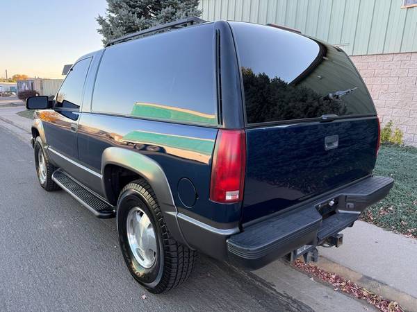 1996 Chevy Tahoe Lt 2 Door Sport 4x4 130K Low Miles. 5.7L Vortec V8 Auto Trans Leather Loaded New Tires Power windows and locks 4x4 shift on the fly very clean rust free colorado car that has been stored in the garage. It has a fresh emissions test already passed runs and drives great Bluetooth stereo back up camera and and custom exhaust very straight and ready to go. Shipping is available give us a call thanks