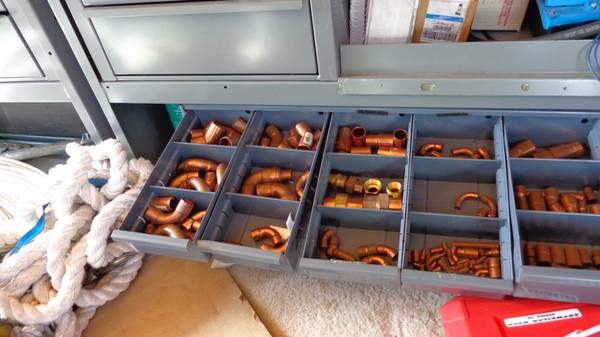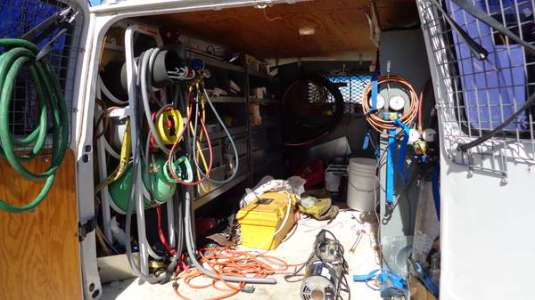 I'm selling a very good condition one ton service van. This van is the perfect set-up for someone that wants a heavy-duty vehicle ready for HVAC business. It's well equipped for most the work required that you would see out in the field. I did HVAC service work with it. The van is extremely low miles as it has sat unused for several years. I was the 2nd owner I bought it @ about 50k miles, Burt Cheverolet. I took the extra mile to setting it up with the high-grade fit to manufactures body lines Adrian steel welded shelving. There're nicely and precisely fitted exactly for these years of GM vans. These don't rattle, or ever come loose like the bolt together type, they are welded. All very nice shelves, some loaded with service and manuals. 5.7 V-8. Has less than 100K miles. In any event I have not driven it for many years. I needed to clean out the old fuel and install a new fuel pump. It starts easily and runs very well. A few pipe-fitter type tools will go. Have already sold my recovery machine, and bottles and some bigger stuff. Various wire, controls, fittings, copper, and black iron, a few ladders. A Fully loaded PAC - RAT drawer with numerous A/C and piping parts lots of stuff. This is a package deal - not selling the truck by itself. If you have a decent GM full size pickup, might consider some trade.