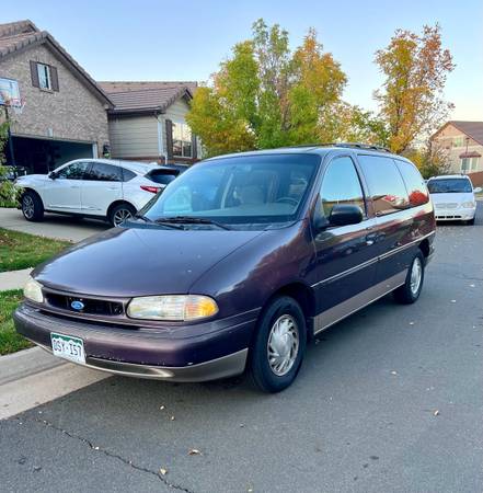One owner 1995 Ford Windstar LX. Seriously low miles with only a little over 98,000. Automatic transmission, 3.8L 6 cylinder engine. Power locks and windows with keyless entry and automatic headlights. Cold A/C and hot heat. Clean Carfax with no accidents and no hail damage. Does have small dings and scratches from normal trips to the store. Interior is a straight up tone capsule and is mint. Runs and drives great. New tires, new windshield, new front brakes all within the last month and a half.