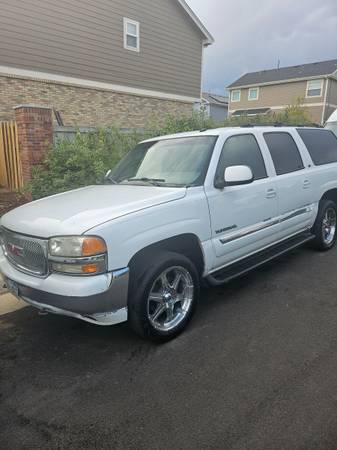 2003 yukon xl dings and dents, passenger door no power, driver door broken lock hole due to theft, new transmission $2000 from wizard transmission, new battery, new shocks all 4, new windshield, new brakes, new throttle body, 3 dvd players with tvs, new motor at 100k due to recall, 289k miles but has a lot of new parts, does go into reduce power mode sometimes I'm sure its easy fix as it has plenty of power otherwise, just restart it and it goes back to normal. You will make it home! Just drove it to colorado springs and back.