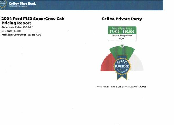 F150 Lariat. Professionally rebuilt 5.4 Triton V8 and Transmission (under warranty). This is a 4X4 with new catalytic converters,7" Double Din Stereo with subs and a backup camera, It has a matching Leer topper with a bedliner, rear sliding window and a sunroof. It has a 1 year old custom interior with heated front seats, everything works perfectly. The truck also has a Viper Alarm and GPS tracking. The title is branded because the right front fender was run into by a trailer and because of the age of the truck, the insurance company declared it a loss. The frame was not impacted and I have before and after repair pictures. Carfax available on request. Some pictures show 24" custom wheels that are optional. The first picture shows the original wheels and they are included. The price with the 24" wheels and tires included is $8500 The truck is located near Parker Co.