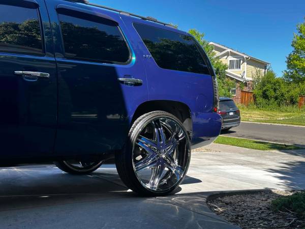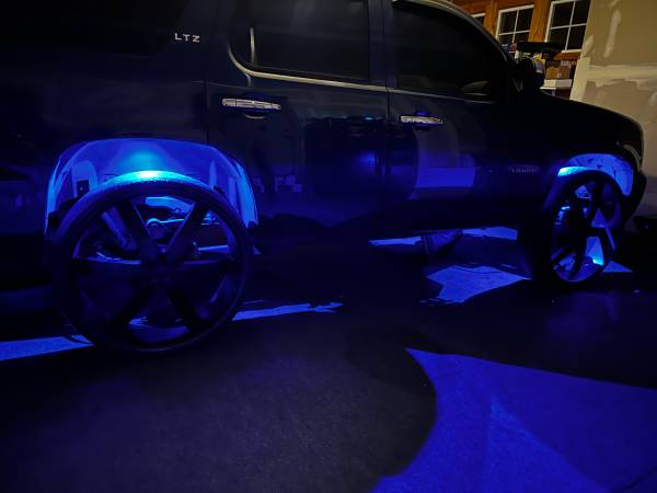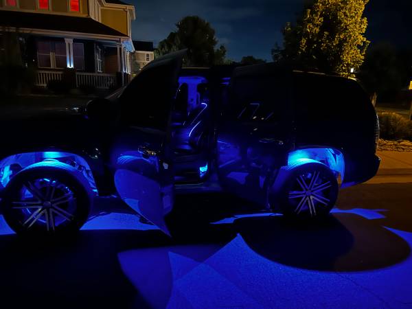 9,500 OBO candy paint remote start alarm with two key fobsFULLY Loaded LED lights  seats floors also under glow inside Out , double den tv cd player/stereo system 12 inch subs/amp , 20 inch TV drop down for passengers ,windows /windshield tint heat, AC , cold air intake, super chip for morehorsepower ,four-wheel-drive, new tires, brakes oil, change, tuneup rear shocks lift kit already up to 30 inch rims black 30 inch rims are sold separately