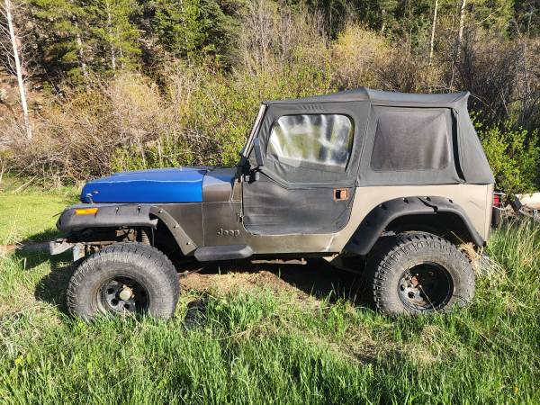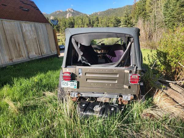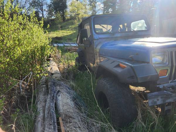 I have a 1993 Jeep Wrangler I'm trying to find a home for. It needs a working engine, as the the one it has overheated and threw a rod. Has a fairly new 5 speed manual transmission. A bear damaged the right rear/back of the soft top cover it has. Aside from those problems, the body is in good condition as well as the tires which are 33" and on 15" rims. Any questions, please call.